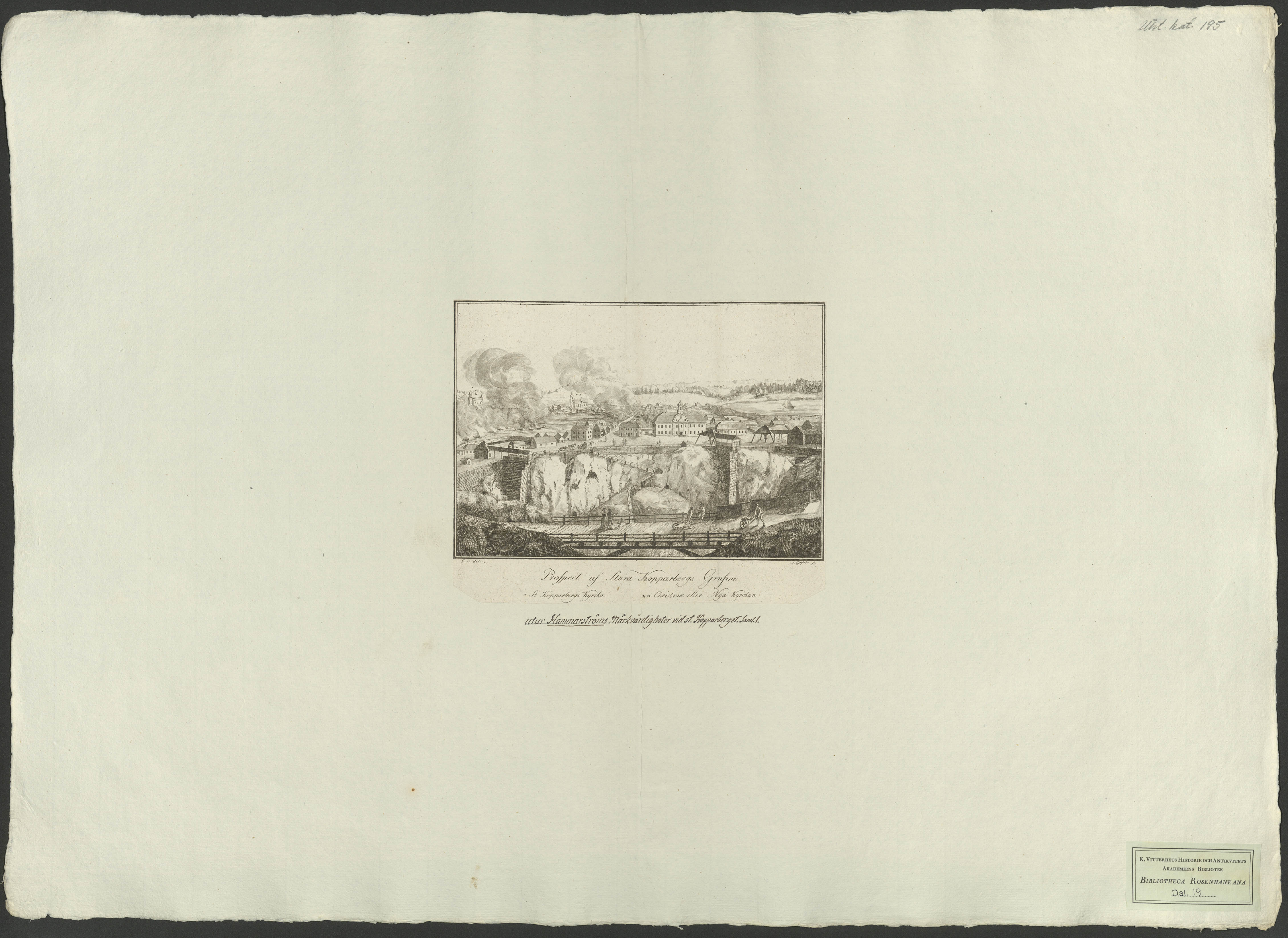 Beskrivning: 1 grafiskt bl. : Vy över gruvan. G. B. Del. J. Kjölström sc