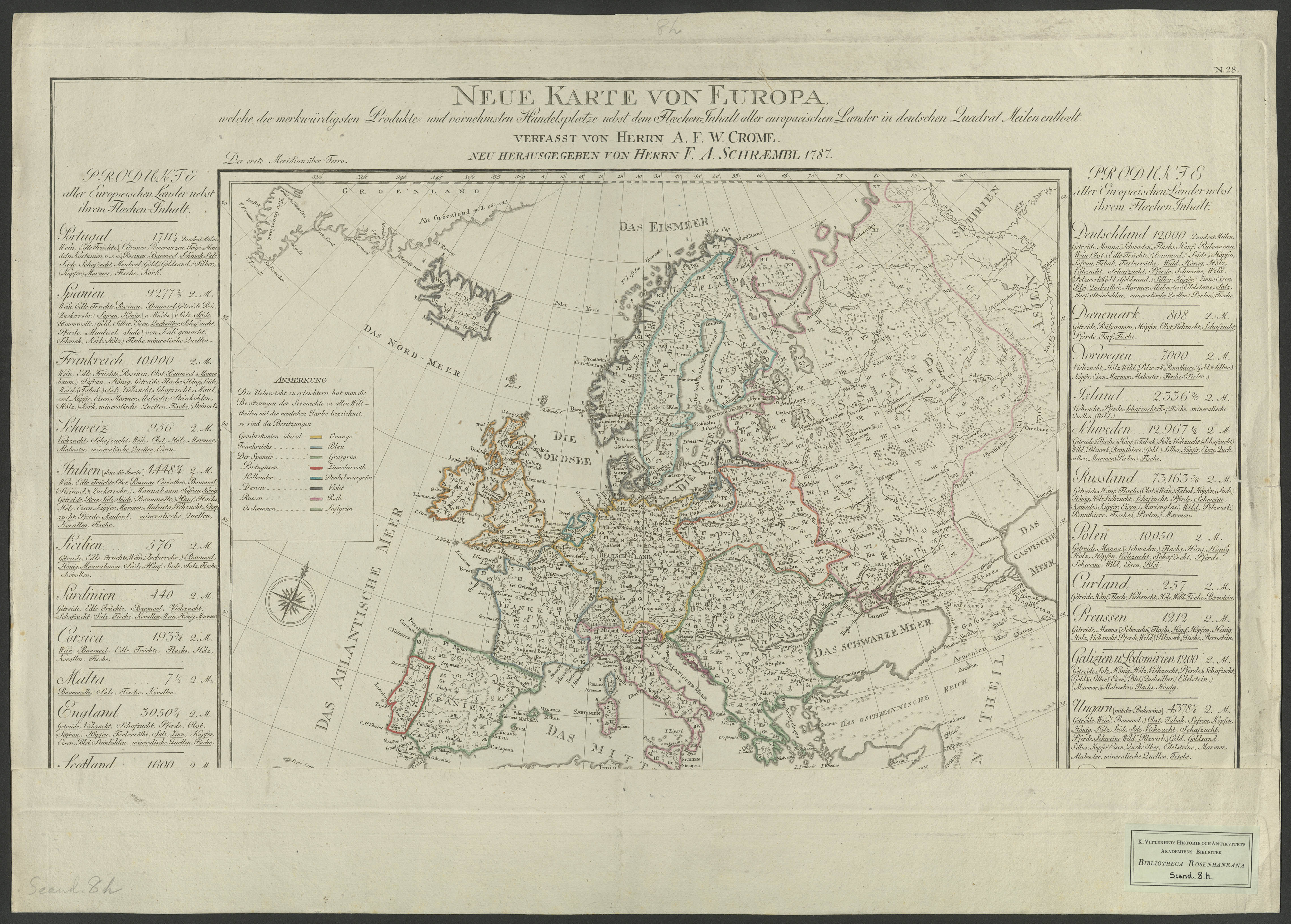 Neue Karte von Europa welche die merkwärdigsten Produkte und vornehmsten Handelsplätse nebst ....[Kartografiskt material]