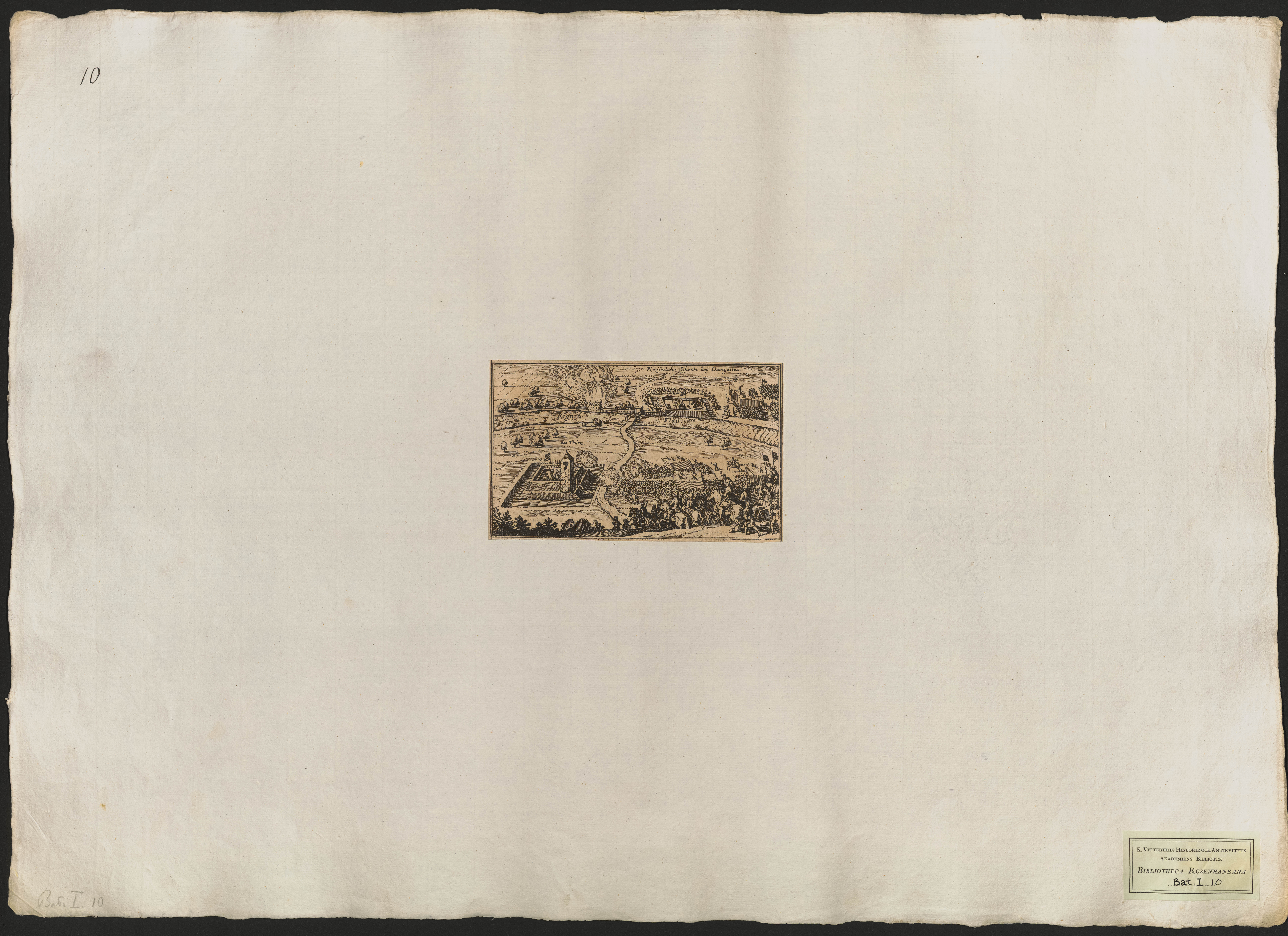 Beskrivning: 1 grafiskt bl. : Belägringen av Damgarten 1630. Den svenska hären går till anfall mot det gamla befästningstornet.
