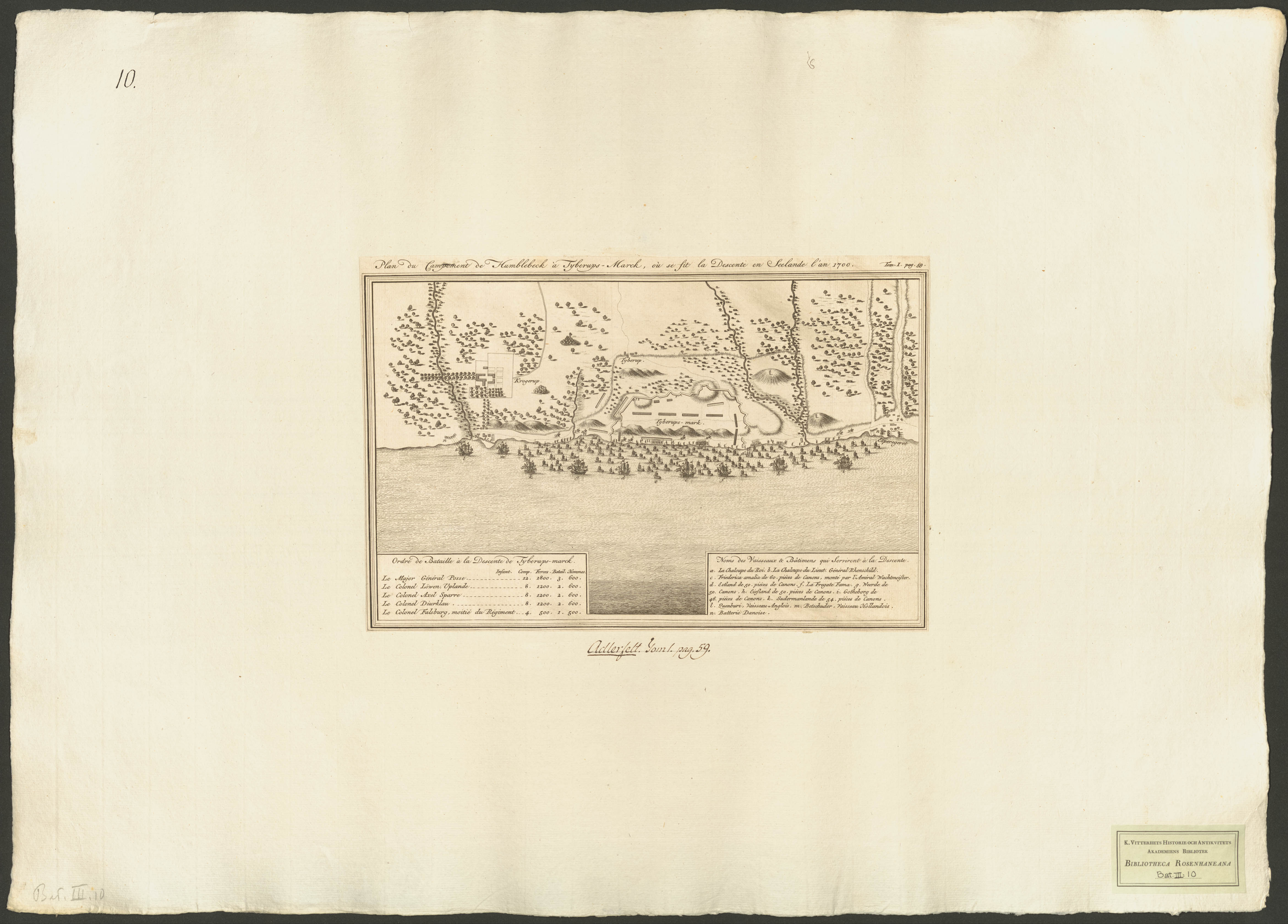 Plan du Campement de Humblebäck à Tyberupsmarck, où se fit la descente en Seelande l'an 1700.[Kartografiskt material]