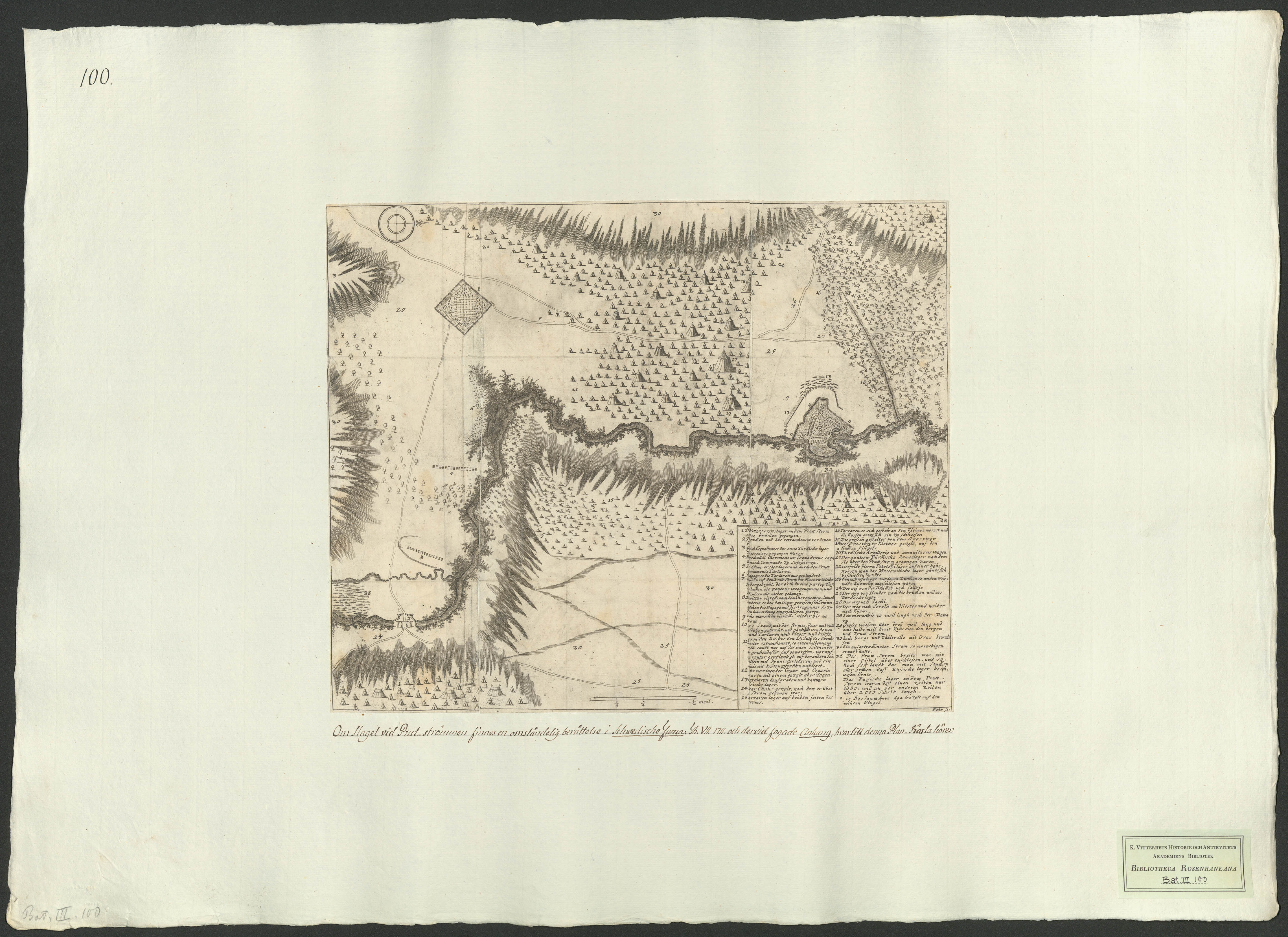 Beskrivning: 1 karta : Floden Pruts (Pruth) dalgång i Ukraina. På ömse sidor turkiska respektive ryska härlägren.