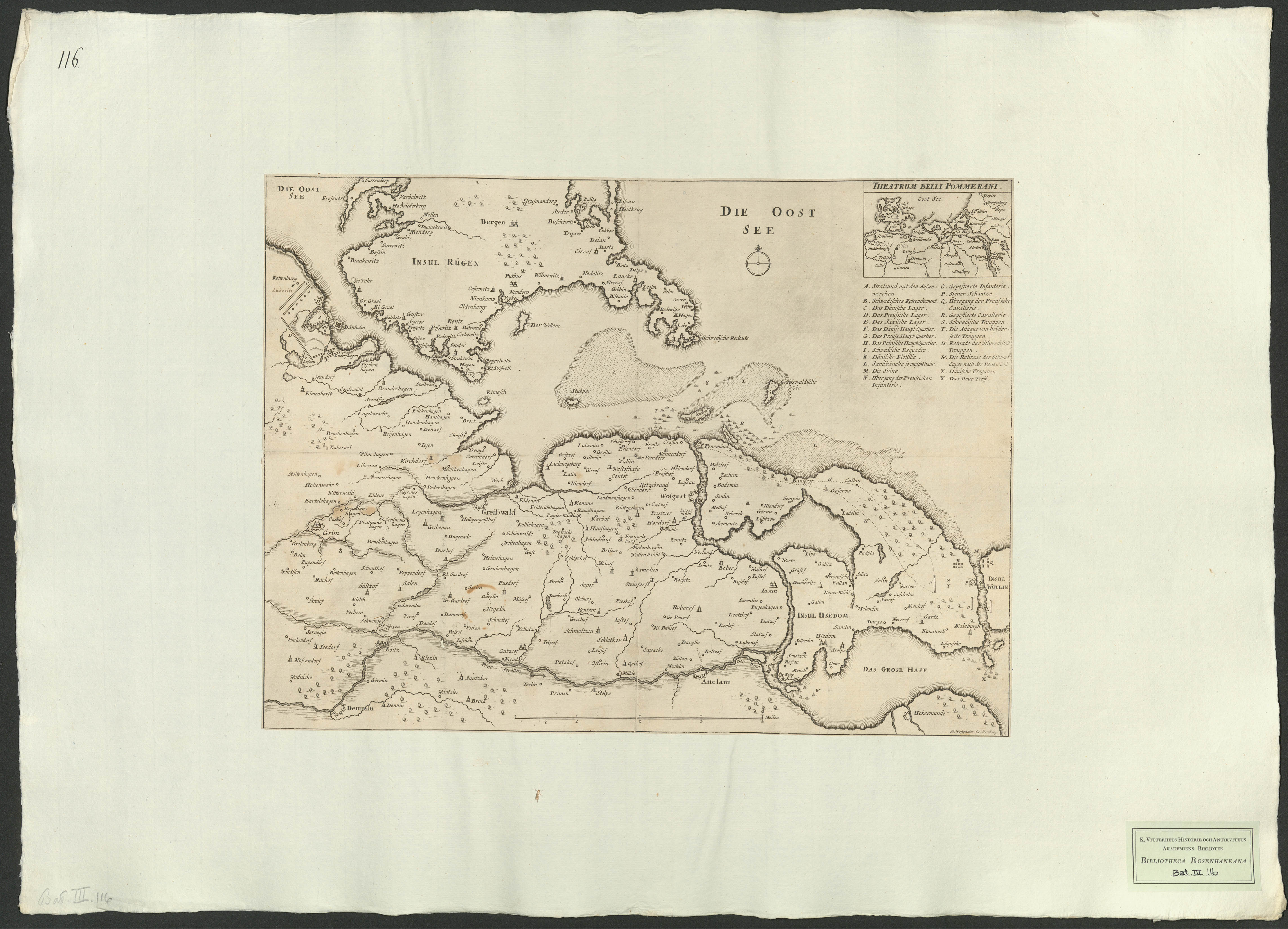 Beskrivning: 1 karta : Karta över Pommern. Visar byar och vattendrag.;Visar de svenska, danska, polska, preussiska och sachsiska truppernas läger och rörelser. H. Westphalen fec. Hamburg