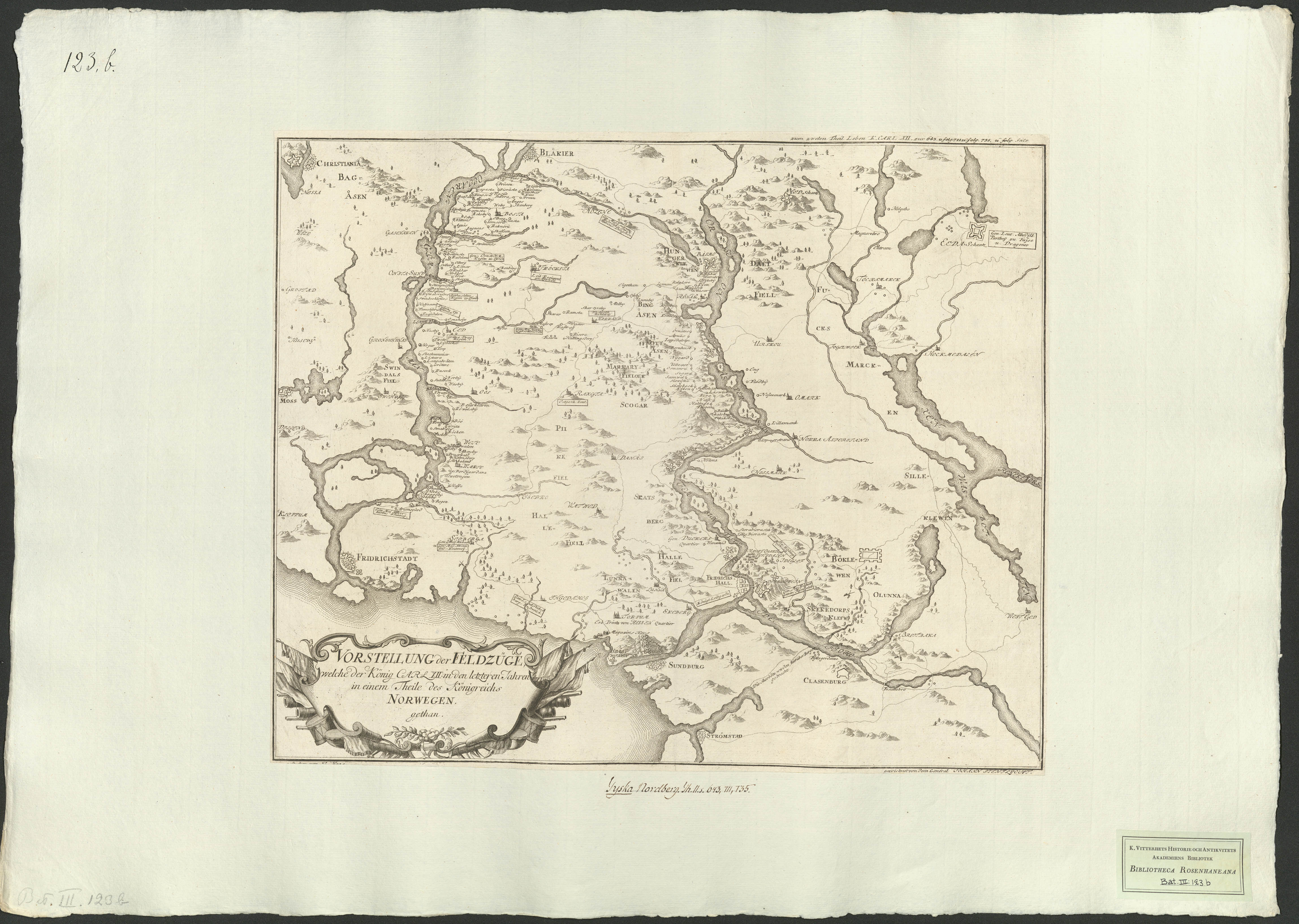 Vorstellung der Feldzüge, welche der K. Carl XII in den letzteren Jahren in einem Theile des Königsreichs Norwegen gethan.[Kartografiskt material]