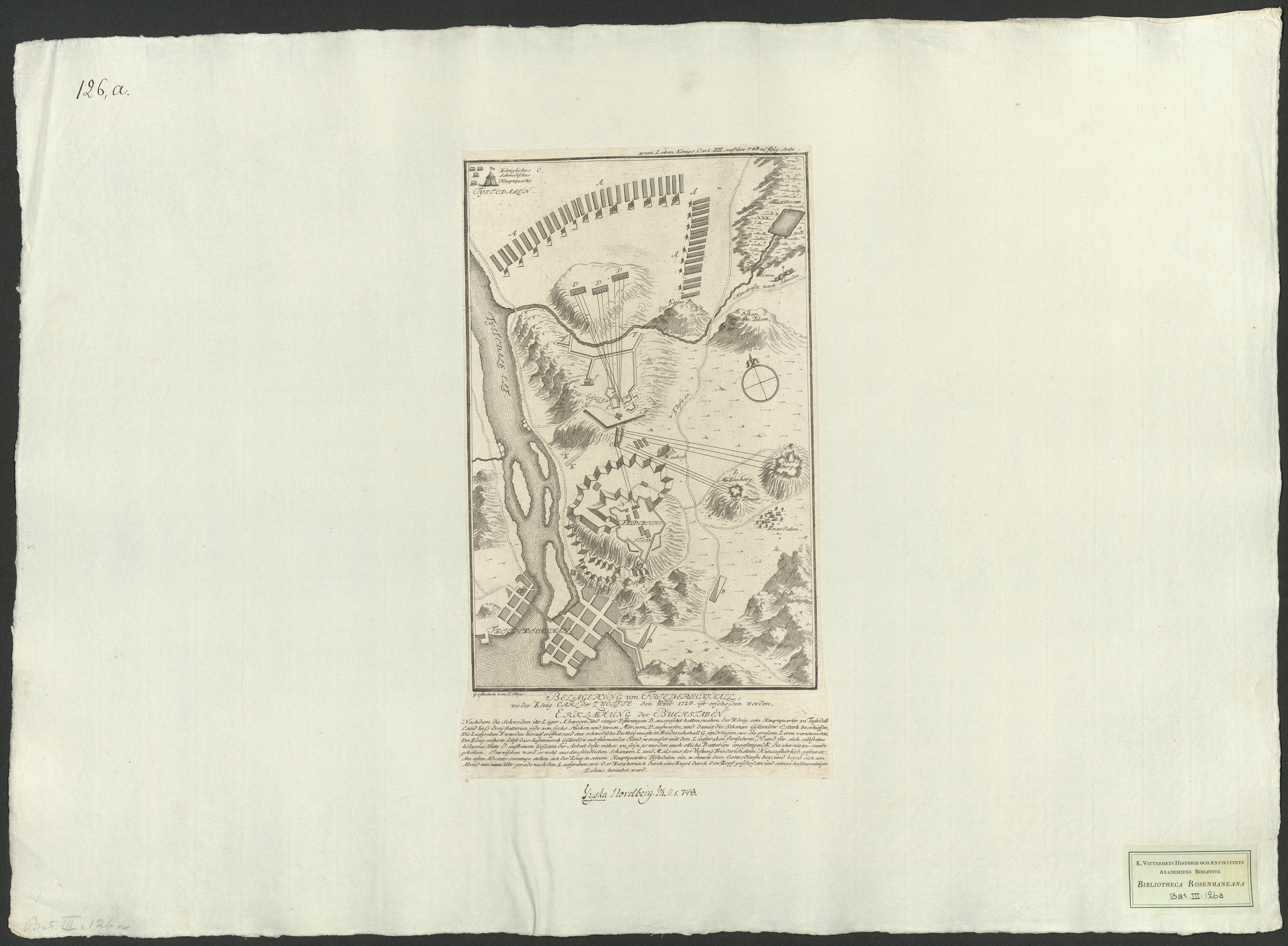 Beskrivning: 1 karta: Visar svenskarnas posteringar, skottlinjer samt varifrån det dödande skottet mot Karl XII avlossades. Byar, hydrografi samt vissa topografiska detaljer. Underst en teckenförklaring. Gestochen von J. Haas.