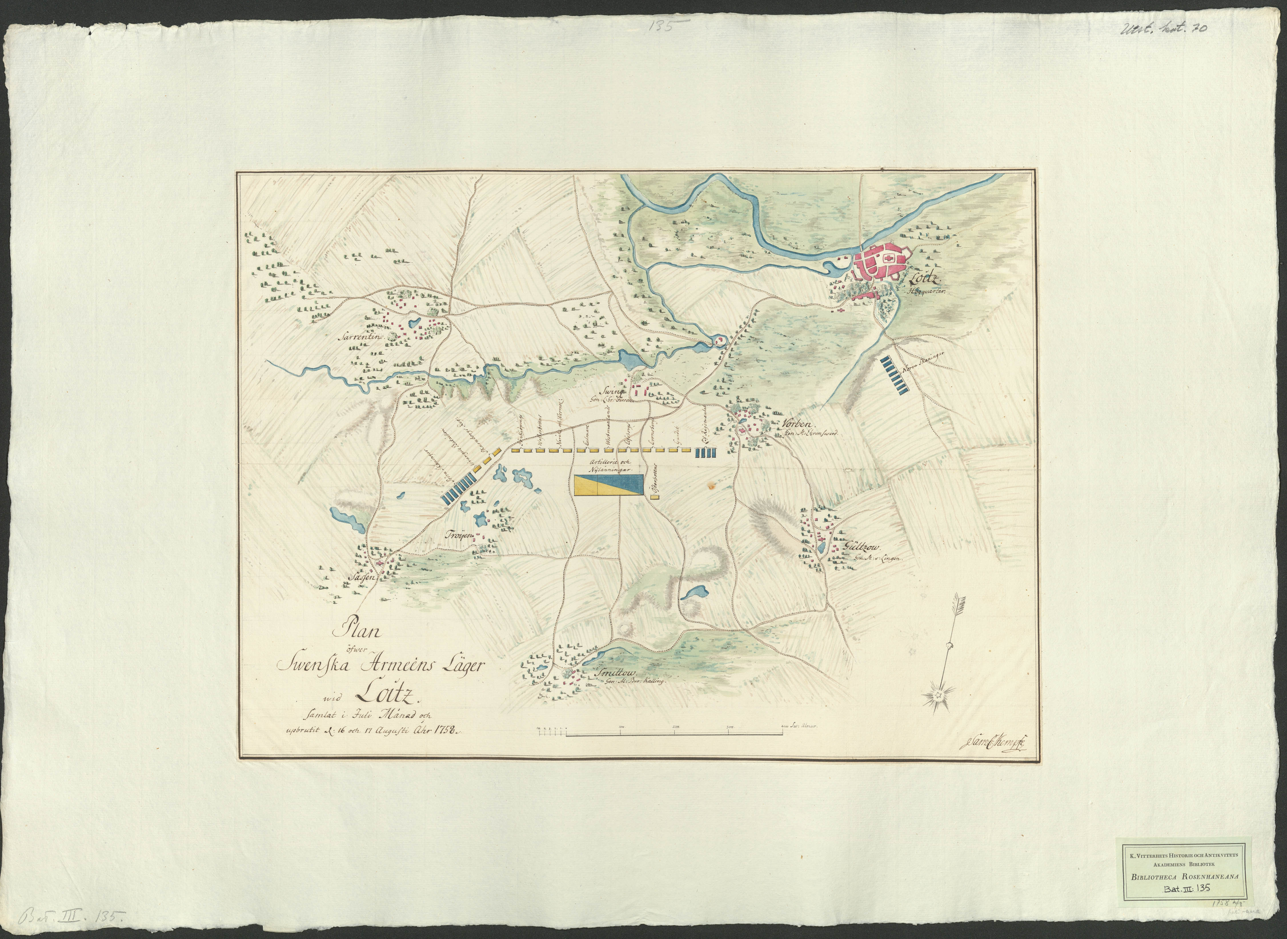 Plan öfwer Swenska Arméens Läger wid Loitz, Samlat i Juli månad och upbrutit d. 16 och 17 Augusti Åhr 1758..[Kartografiskt material]