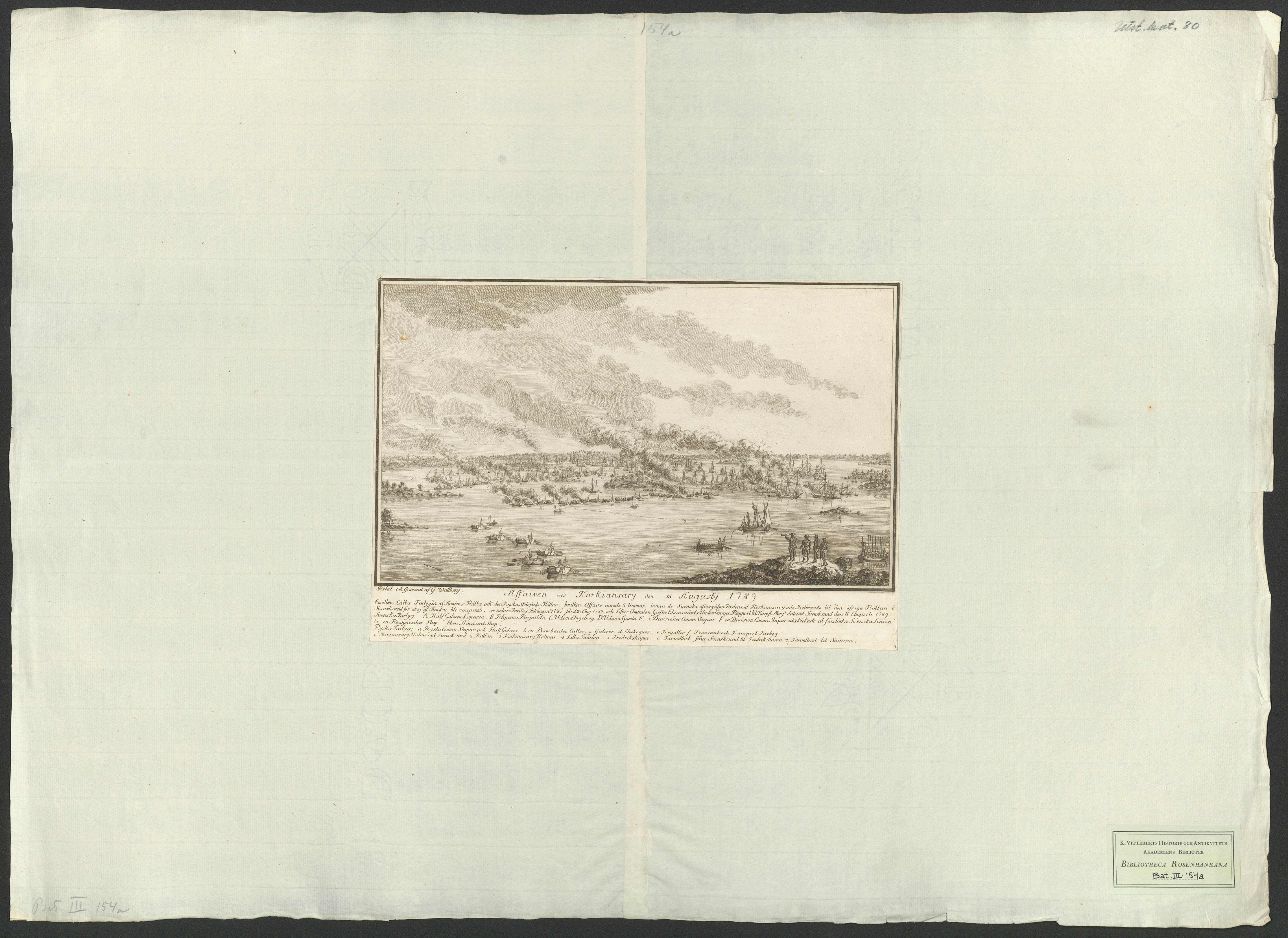 Beskrivning: 1 grafiskt bl. : Panorama över sjöstriden mellan svenska och ryska flottorna. Nedan till höger ses Överamiralen Carl August Ehrensvärd med kikare. I nederkanten beskrivande text. Ritat och Graverat af G. Wallberg