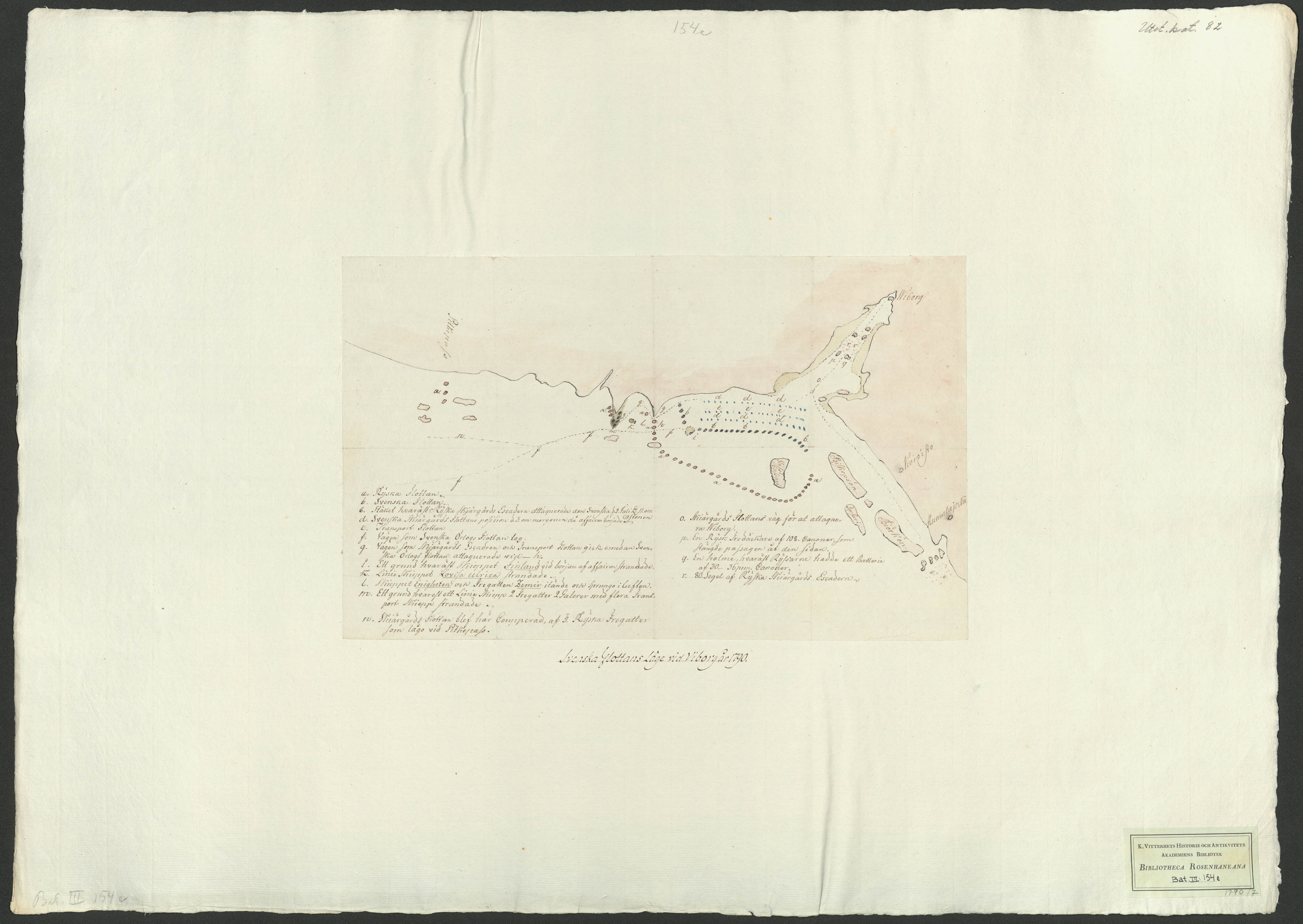 Beskrivning: 1 handritad karta : Visar kusten kring Wiborg och flottornas positioner.