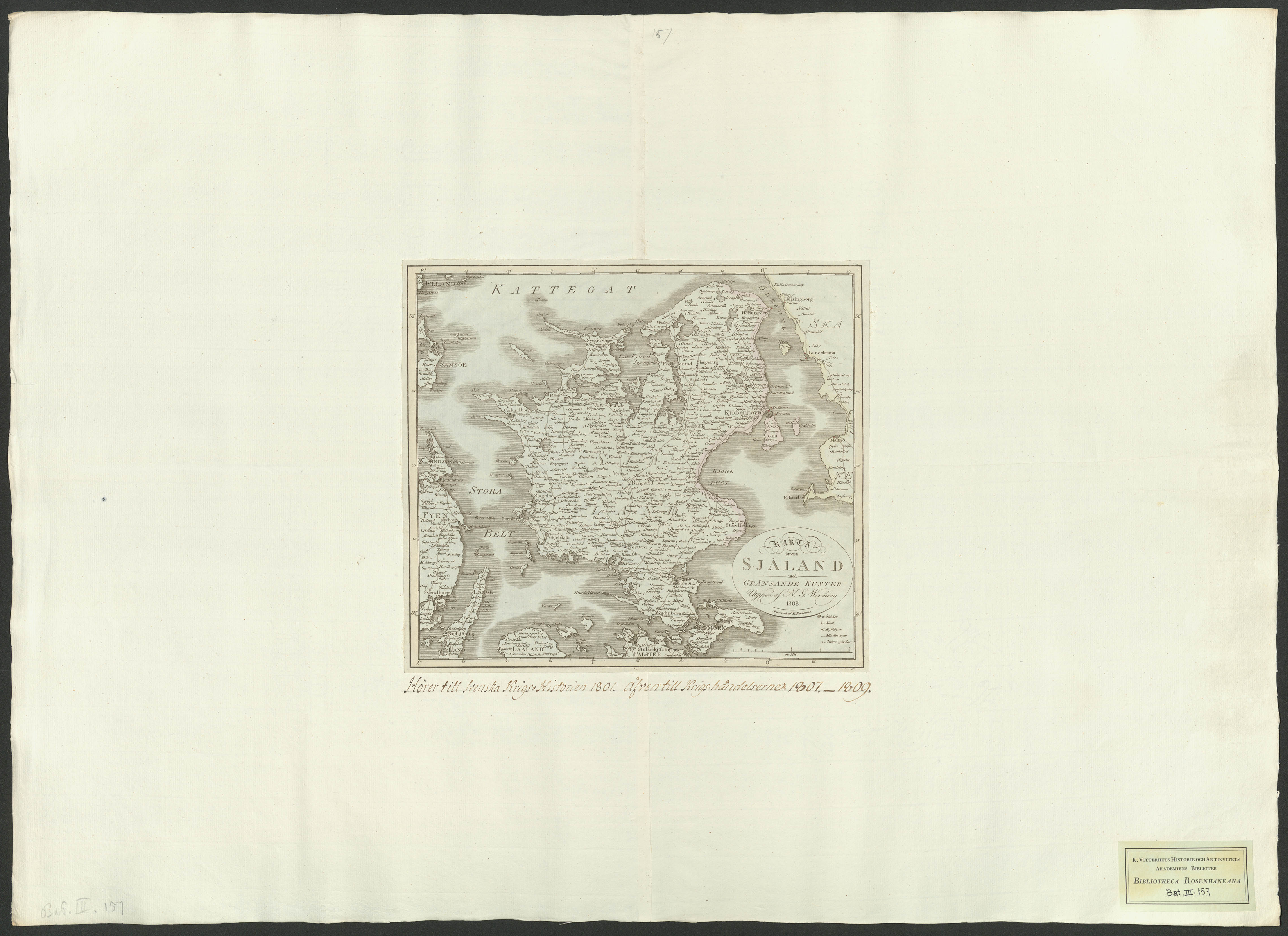 Karta öfver Själand med gränsande kuster.[Kartografiskt material]