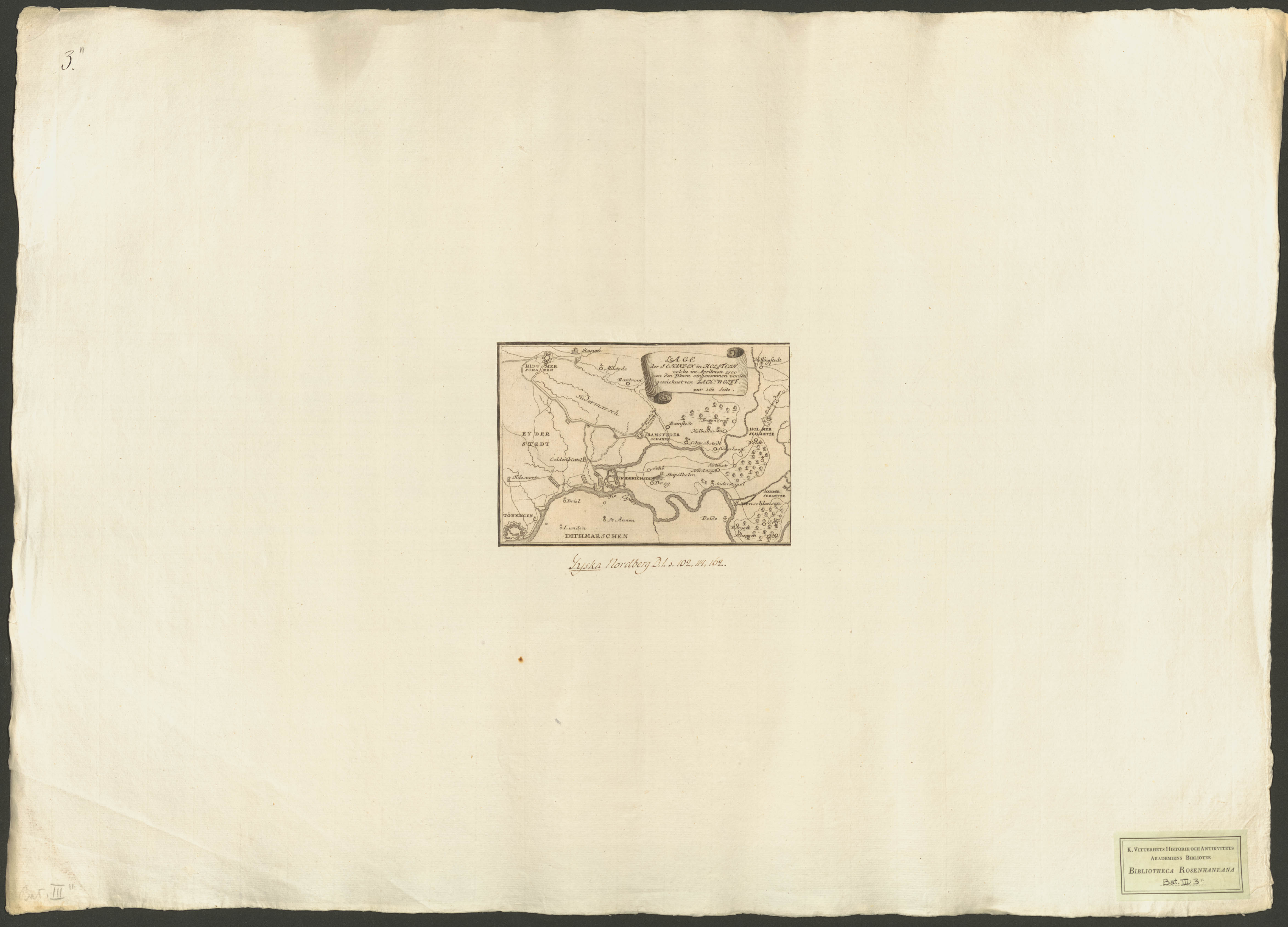 Beskrivning: 1 karta : Karta över befästningar i Holstein som erövrades av danskarna i april 1700. gezeischnet von Zach. Wolff