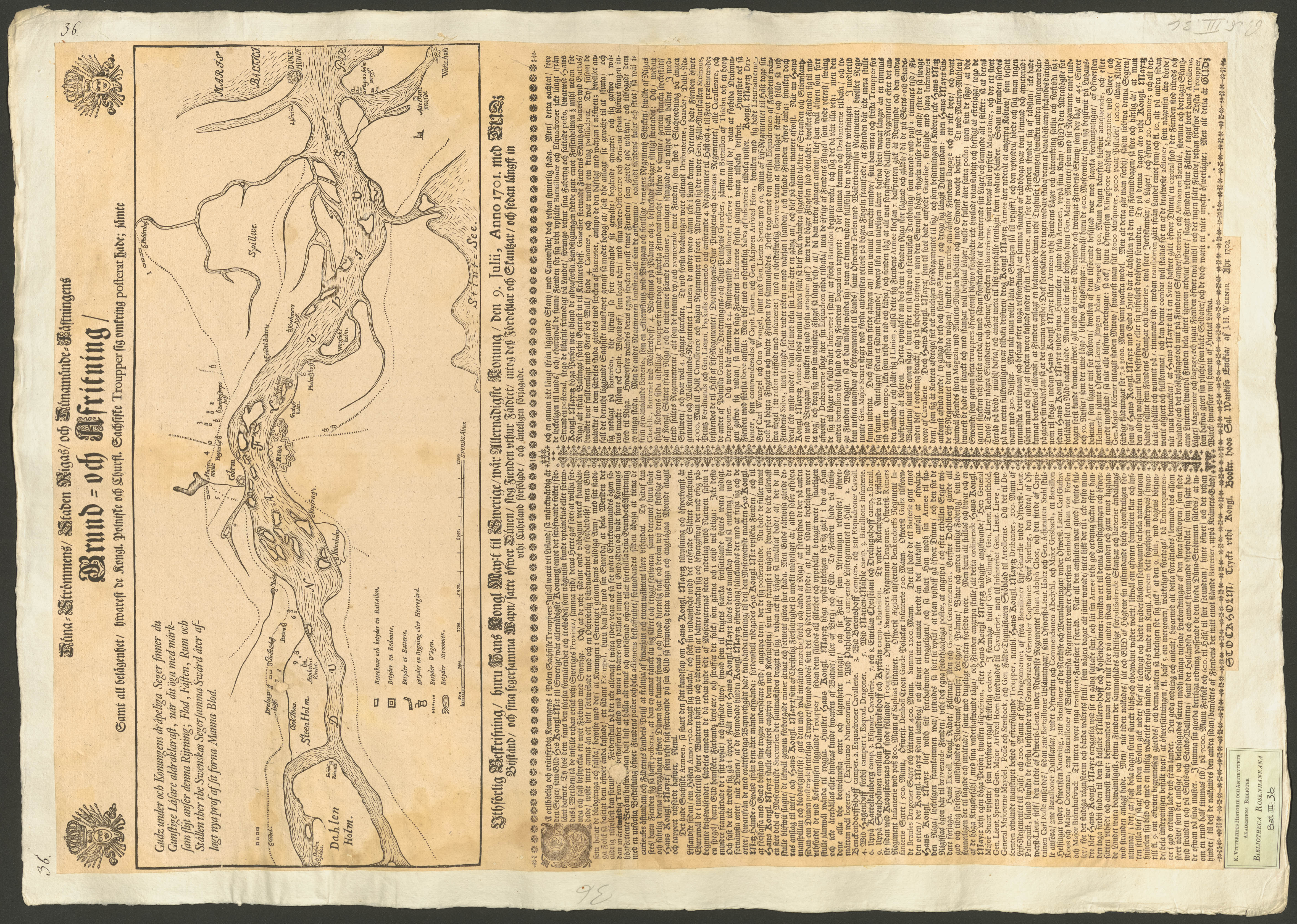 Beskrivning: 1 grafiskt bl. : Överst en topografisk teckning över Dünadeltat och slaget. Därunder en lång text i två spalter, där händelseförloppet beskrivs.