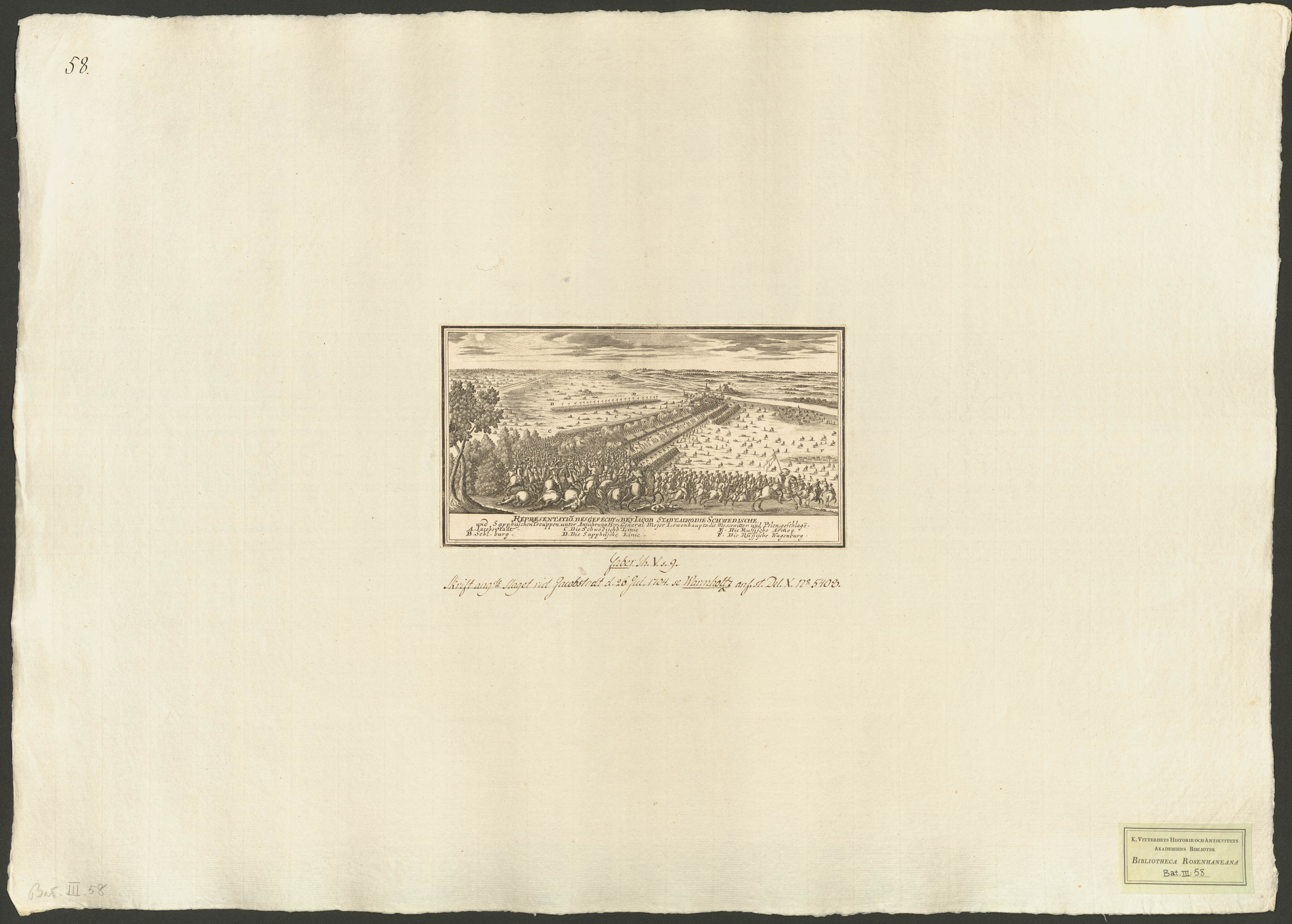 Beskrivning: 1 grafiskt bl. : Panorama över Jakobstadt, Lettland, den 26 juli 1704.
