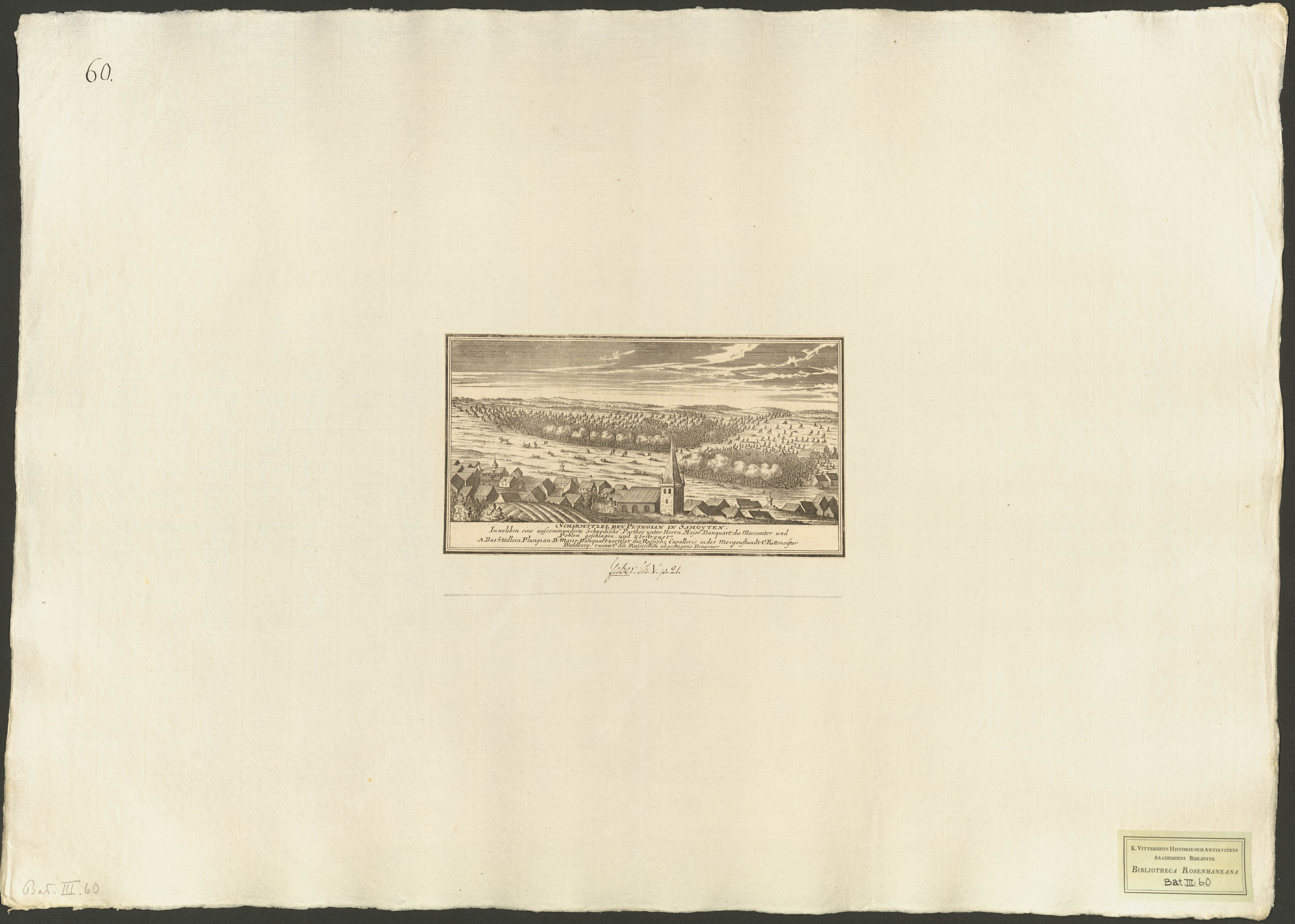 Beskrivning: 1 grafiskt bl. : Panorama över slaget vid Polangen i Litauen. I förgrunden den lilla staden med en kyrka.