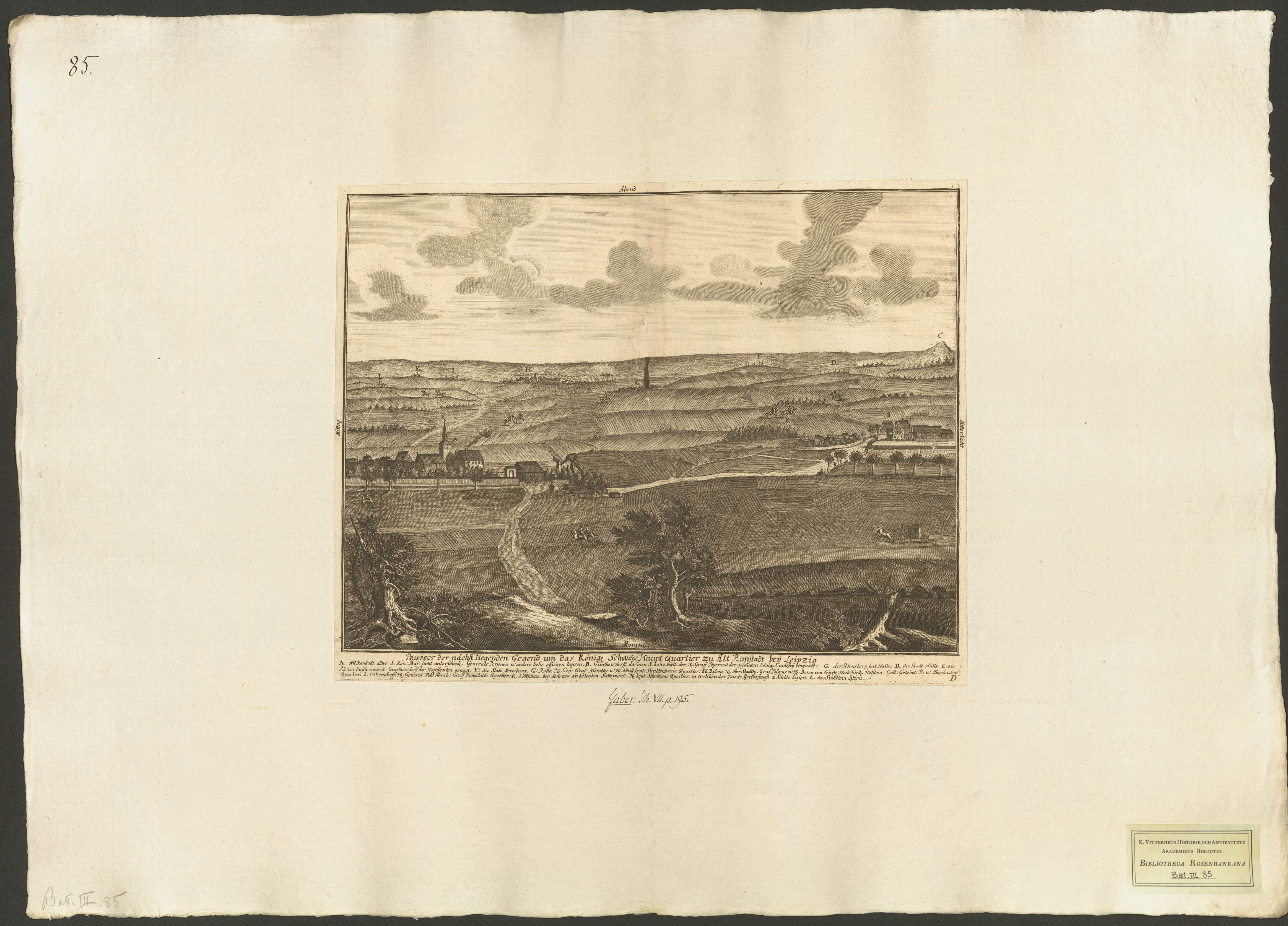 Prospekt der nächstliegenden gegend um das Königl. Schwedischen Haupt Quartier zu Altranstadt bei Leipzig.[Bild]