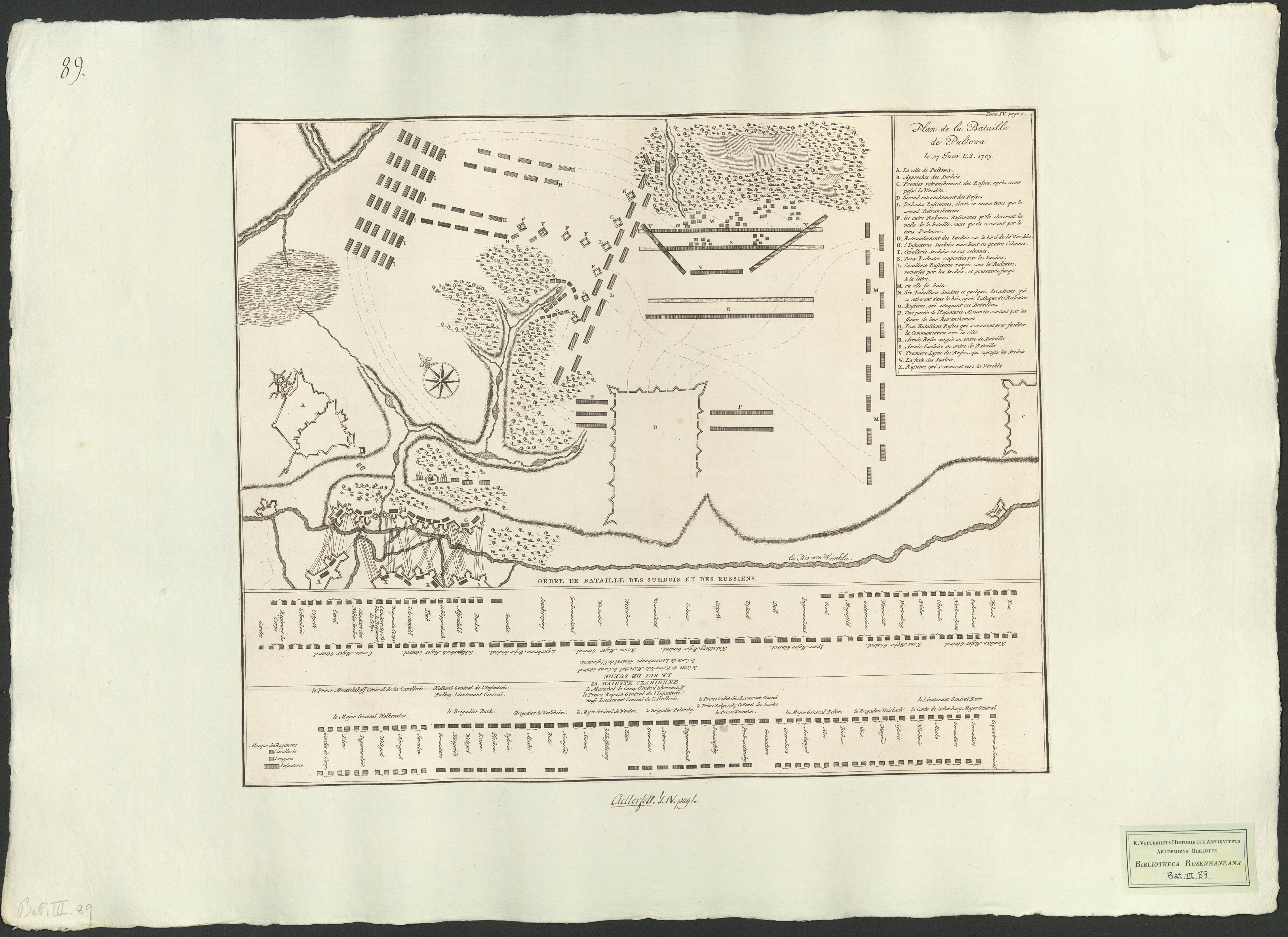 Plan de la Bataille de Pultawa le 27 juin v.s. 1709. Ordre de Bataille de Suedois et de Russiens.[Bild]