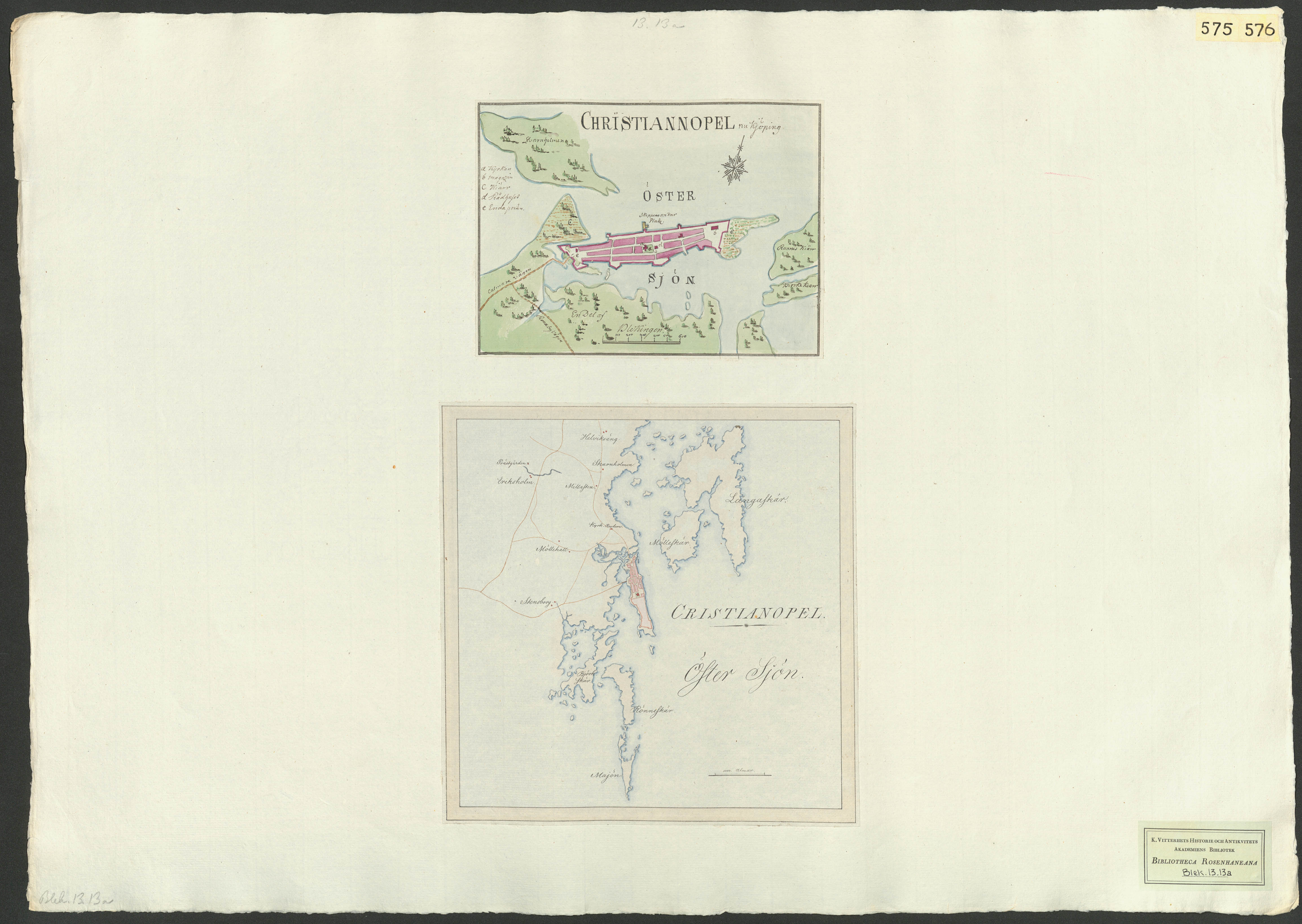 Beskrivning: 1 handritad karta : karta över udden där Kristianopel låg samt närmaste omgivningar.