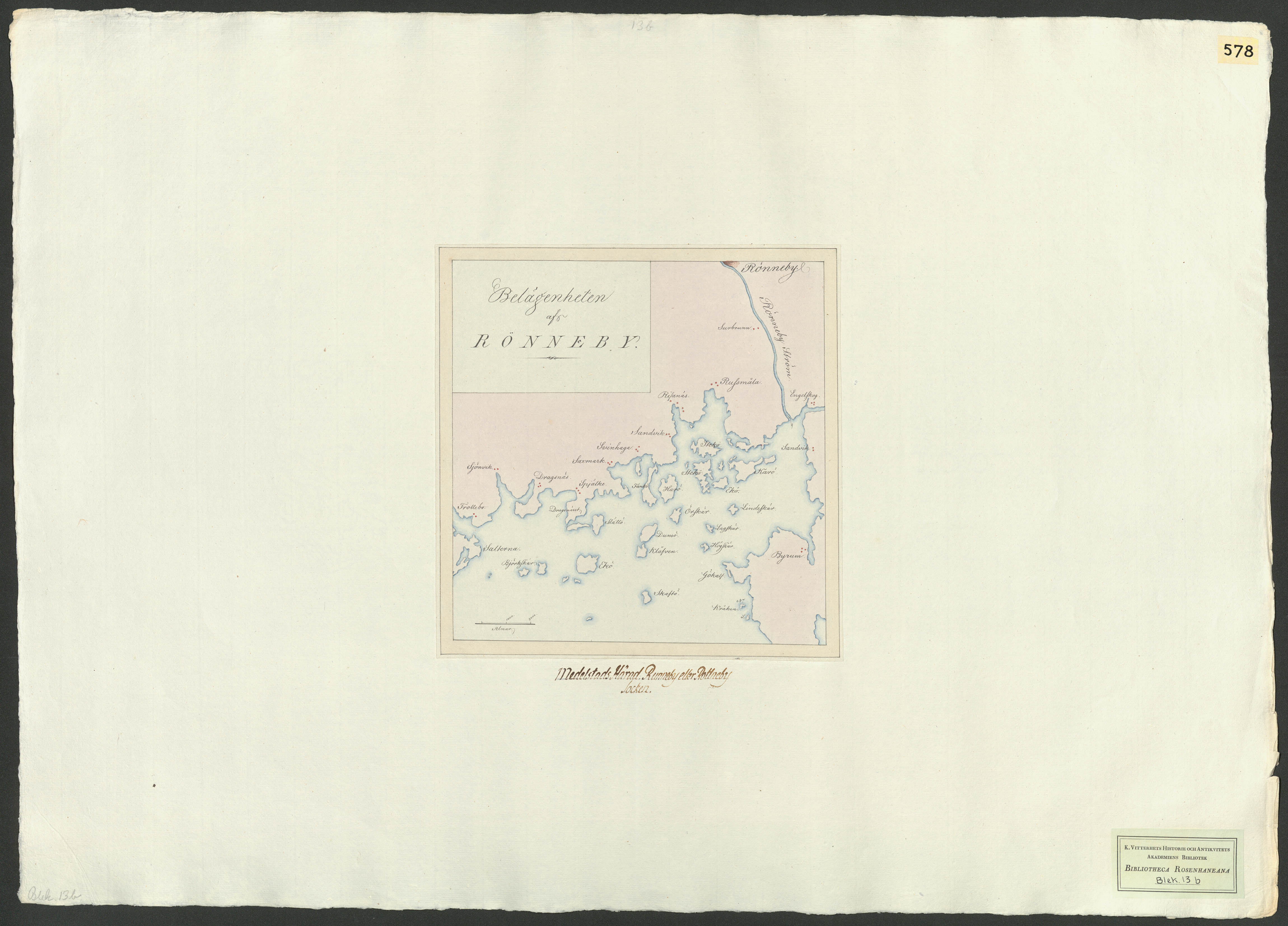 Beskrivning: 1 handritad karta : Del av Blekinges södra kust, kring Rönnebyåns utlopp.