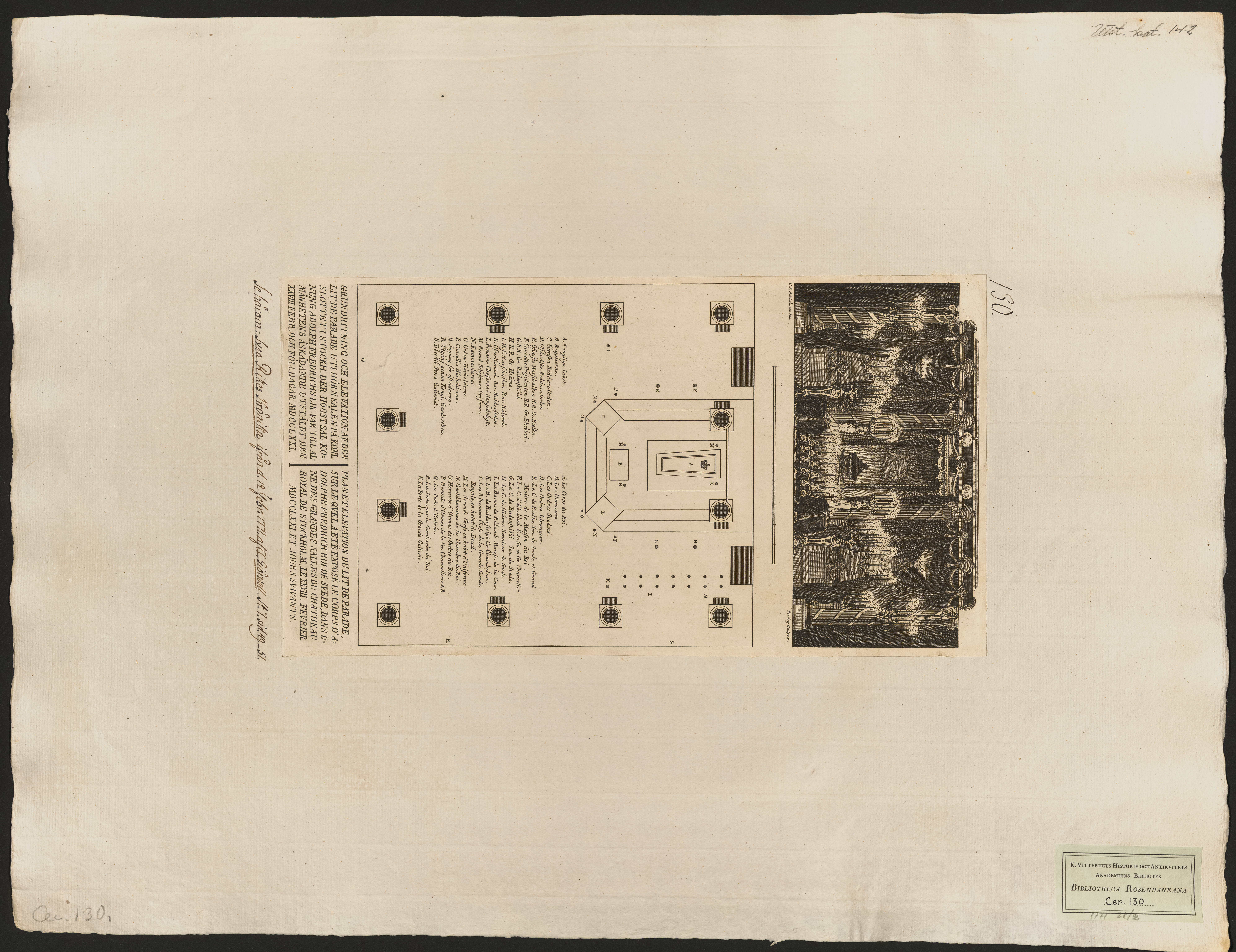 Beskrivning: 1 grafiskt bl. : Överst: mindre kopparstick föreställande Adolf Fredriks lit de Parade på Stockholms slott. Under: plan över den samma samt beskrivande förklaringar. C. F. Adelcrantz inv. ; Floding Sculpsit.