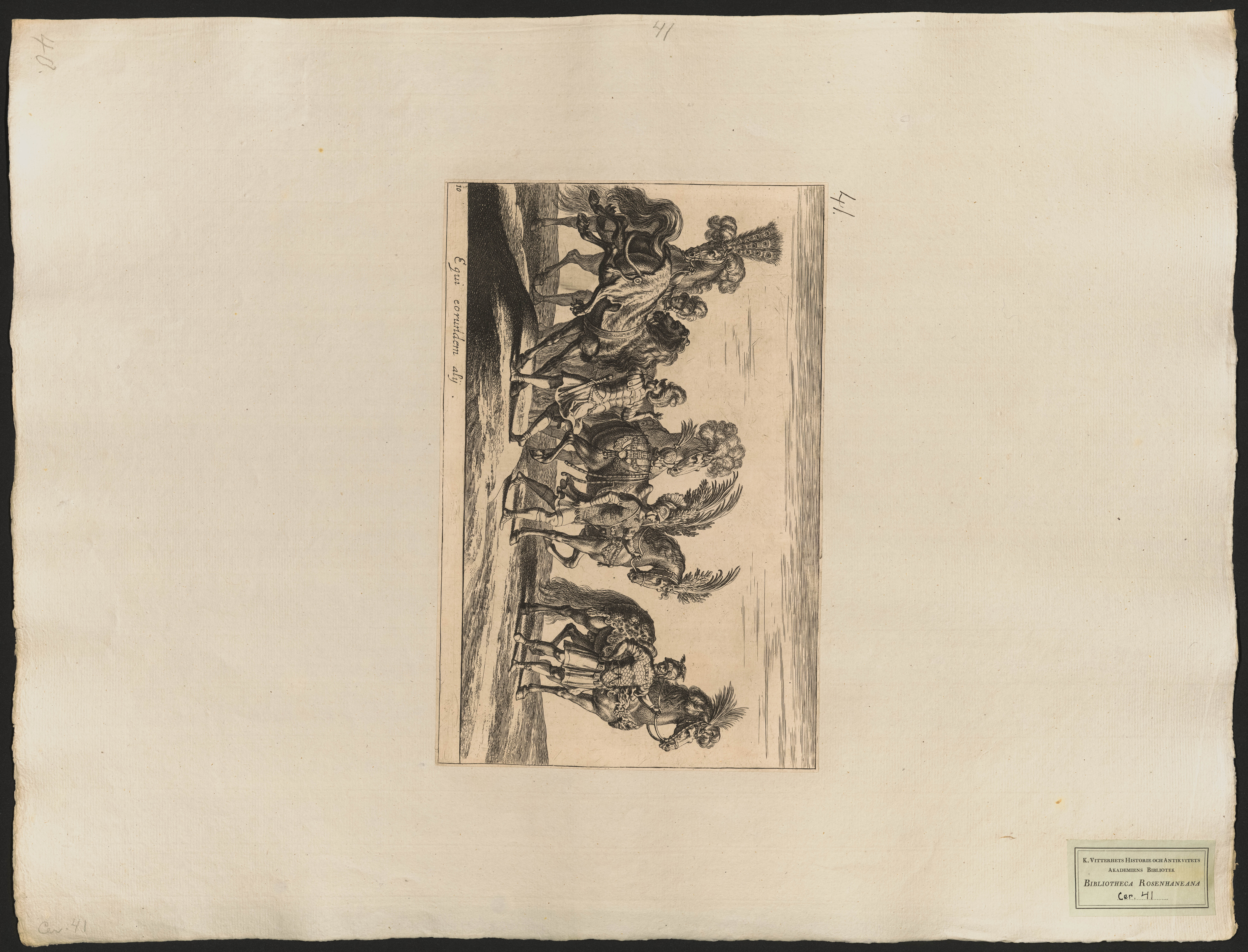 Beskrivning: 1 grafiskt bl. : En grupp ryttare föreställande de gamla göterna i romersk mundering.