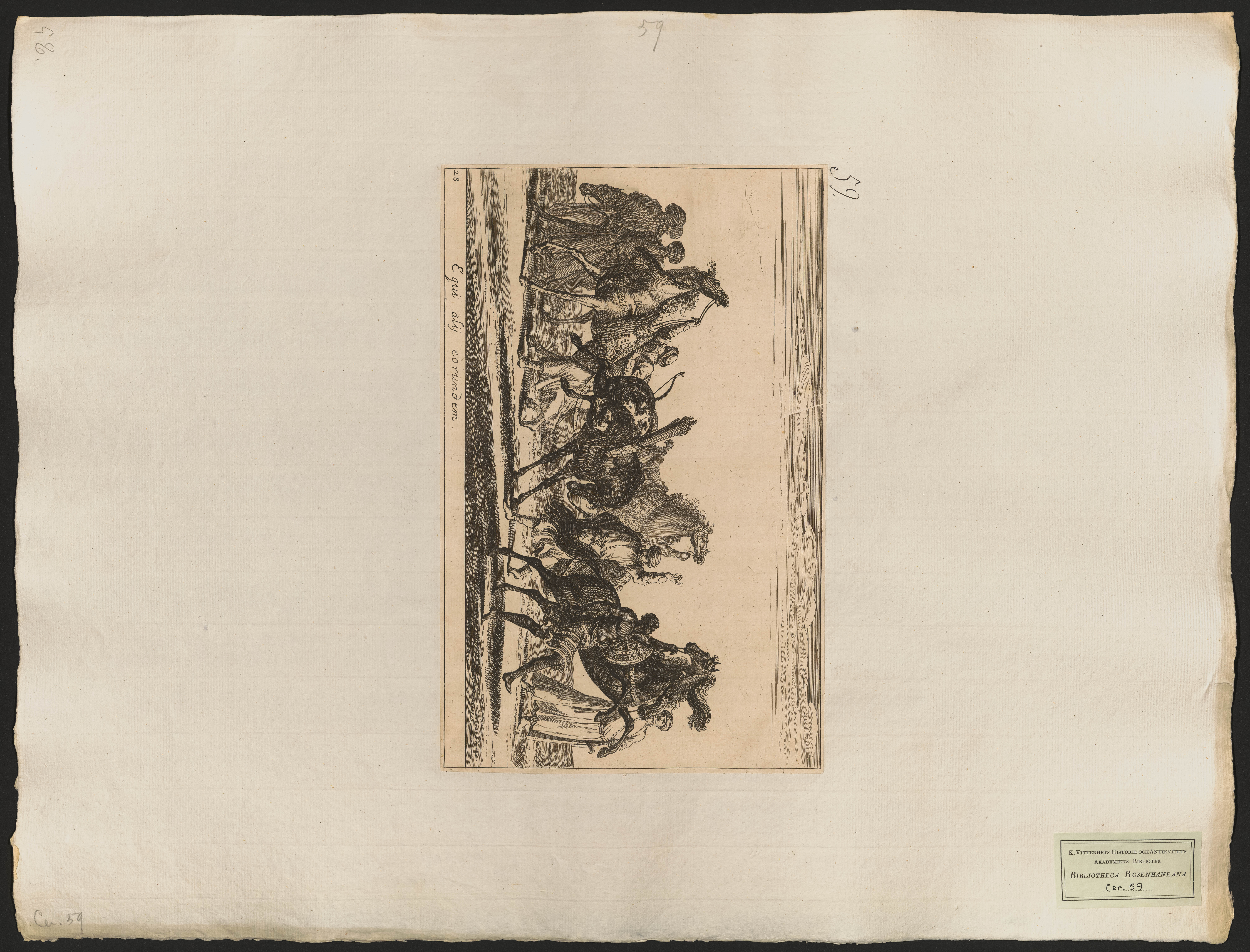 Beskrivning: 1 grafiskt bl. : Janitscharer med hästar.