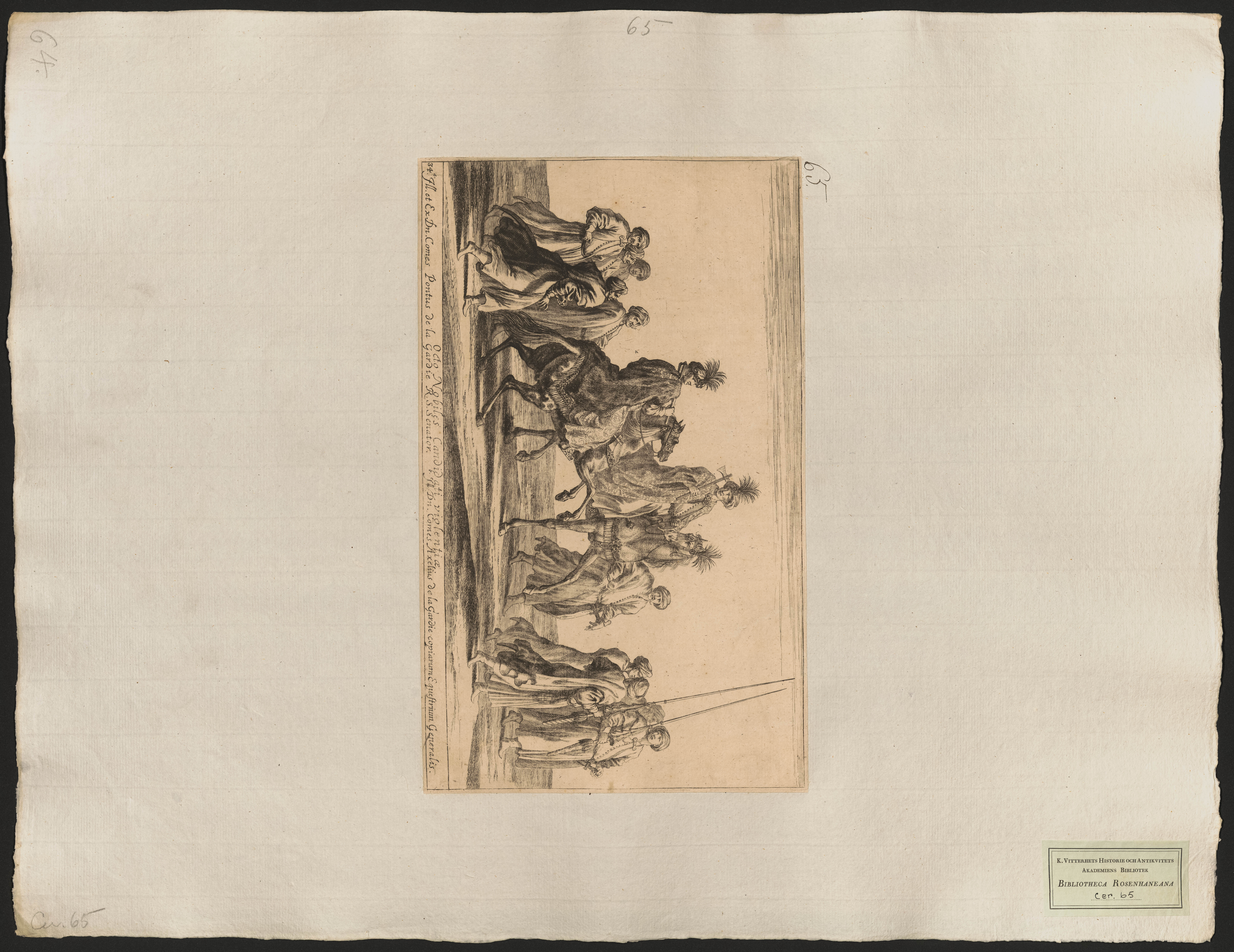 Beskrivning: 1 grafiskt bl. : Pontus och Axel De la Gardie till häst, utklädda till turkiska furstar och omgivna av turkiska krigare