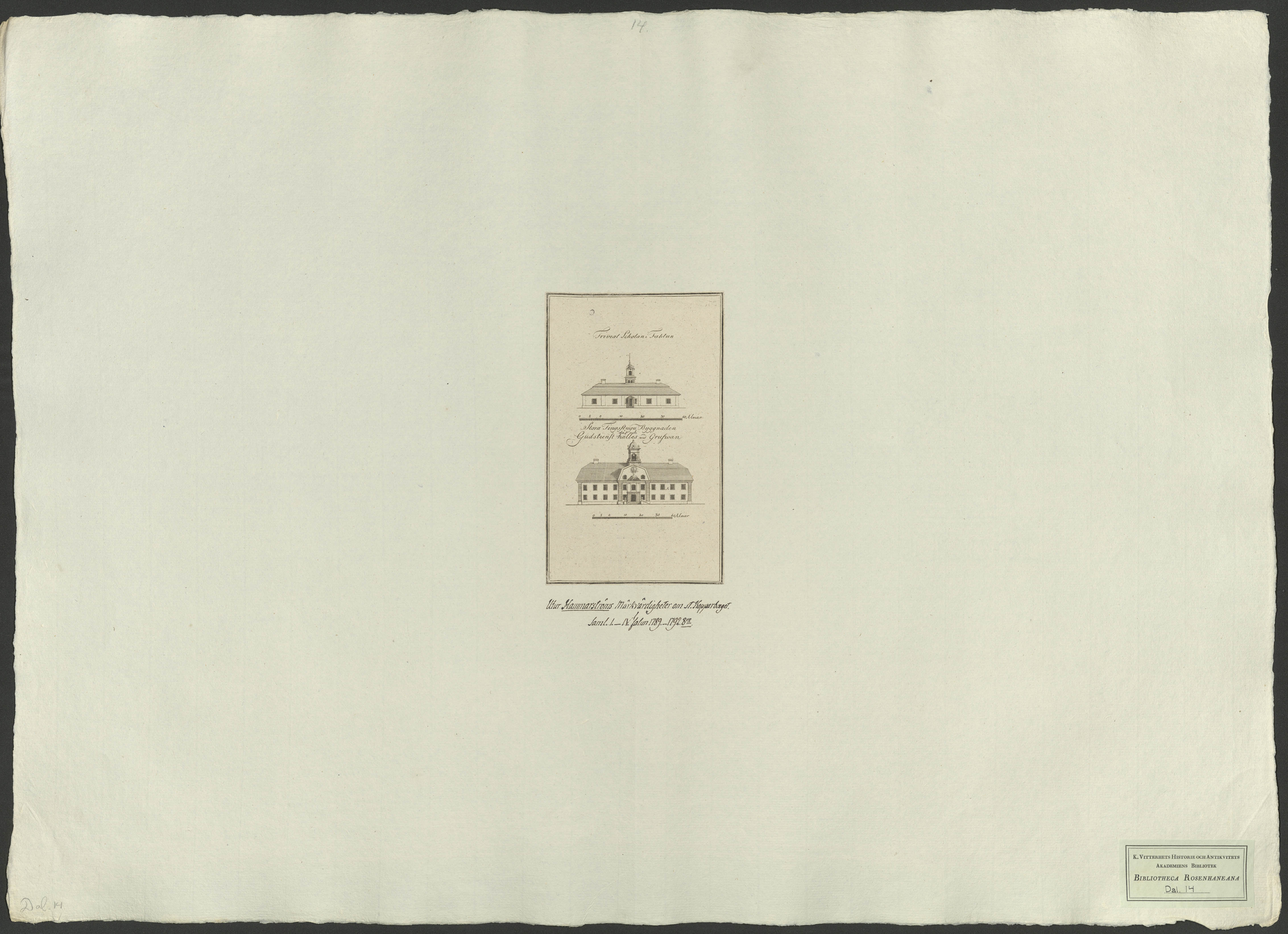 Beskrivning: 1 grafiskt bl. : En fasadritning av vardera byggnaden, på samma blad.