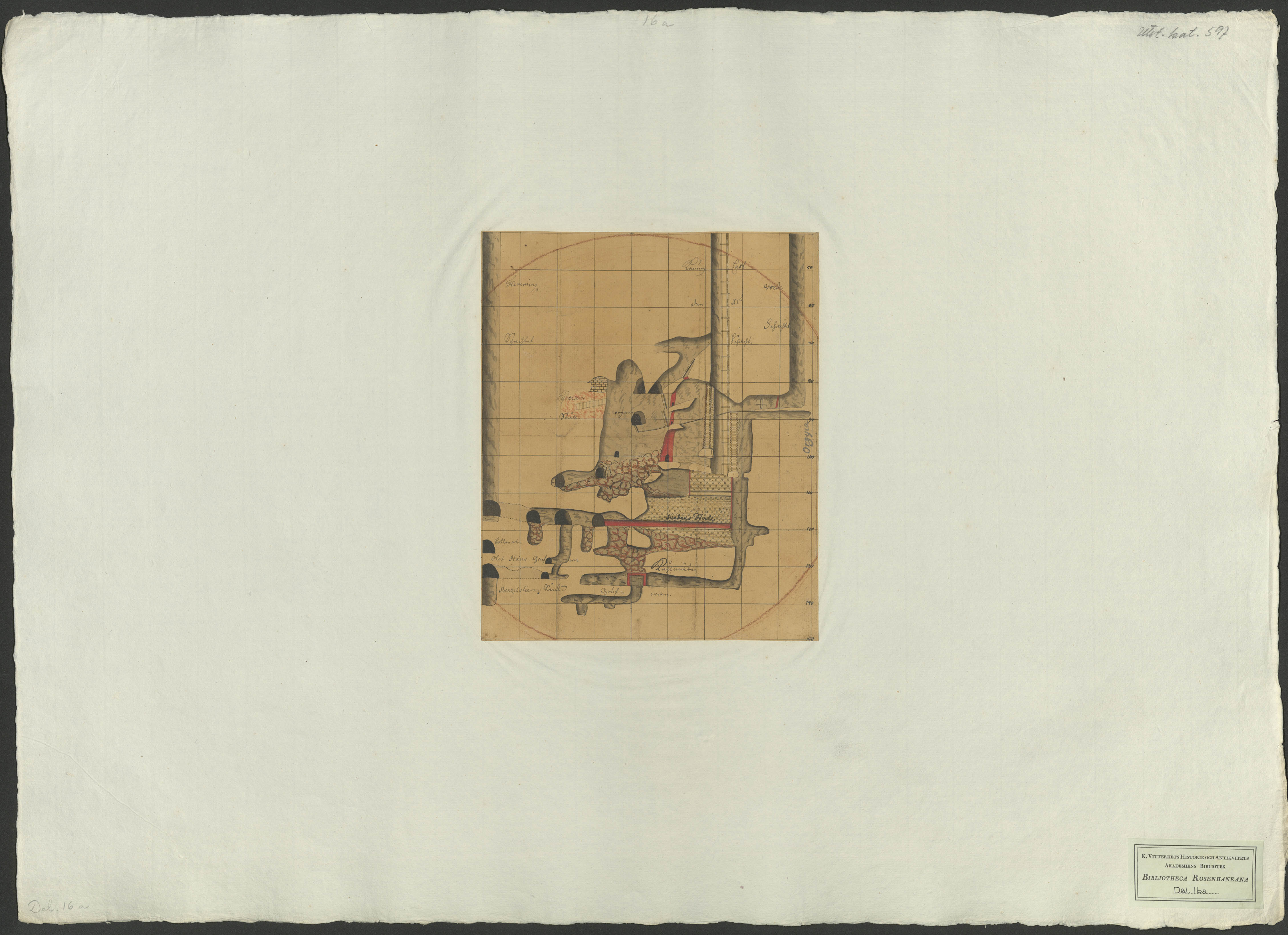 Beskrivning: 1 handritad karta : Uppritning i diagramform över gruvans schakt och orter. En blandning mellan planritning och perspektivteckning.