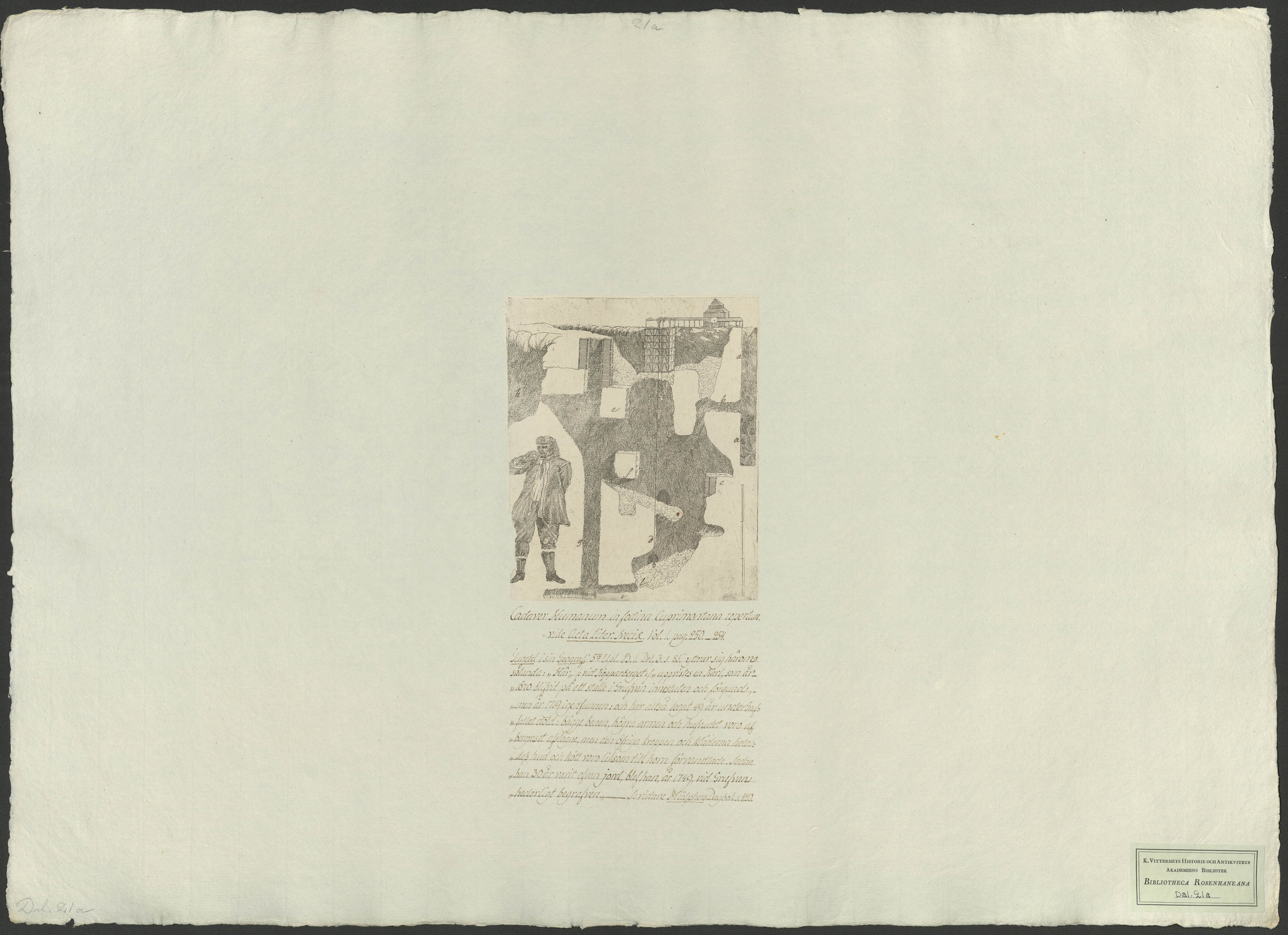 Beskrivning: 1 grafiskt bl. : Schematisk teckning av gruvschakten samt därbredvid det manslik som hittades 1719, efter 49 år i gruvan.