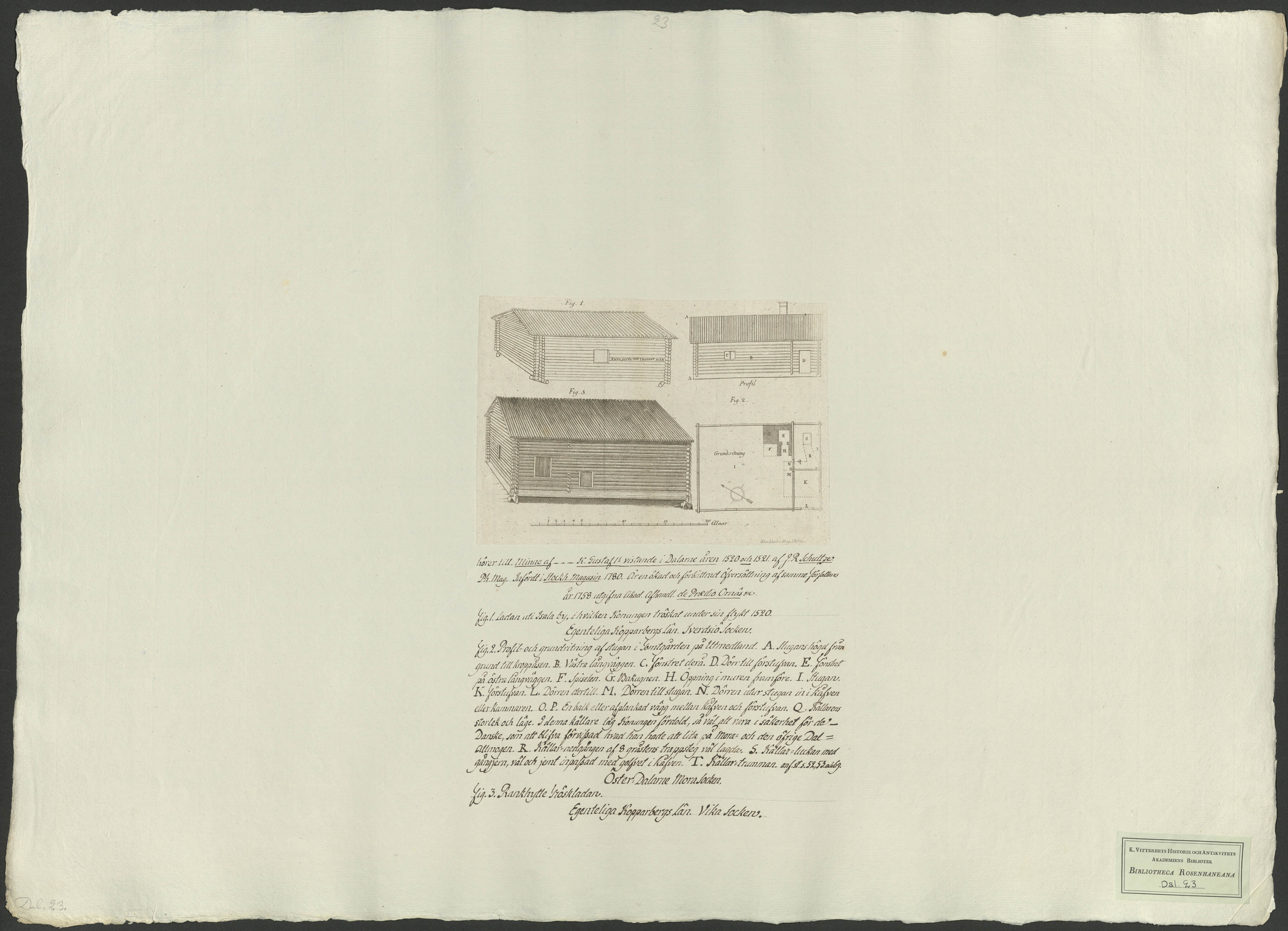 Beskrivning: 1 grafiskt bl. : Plan- och fasadritningar av Isala lada. Skala i alnar.