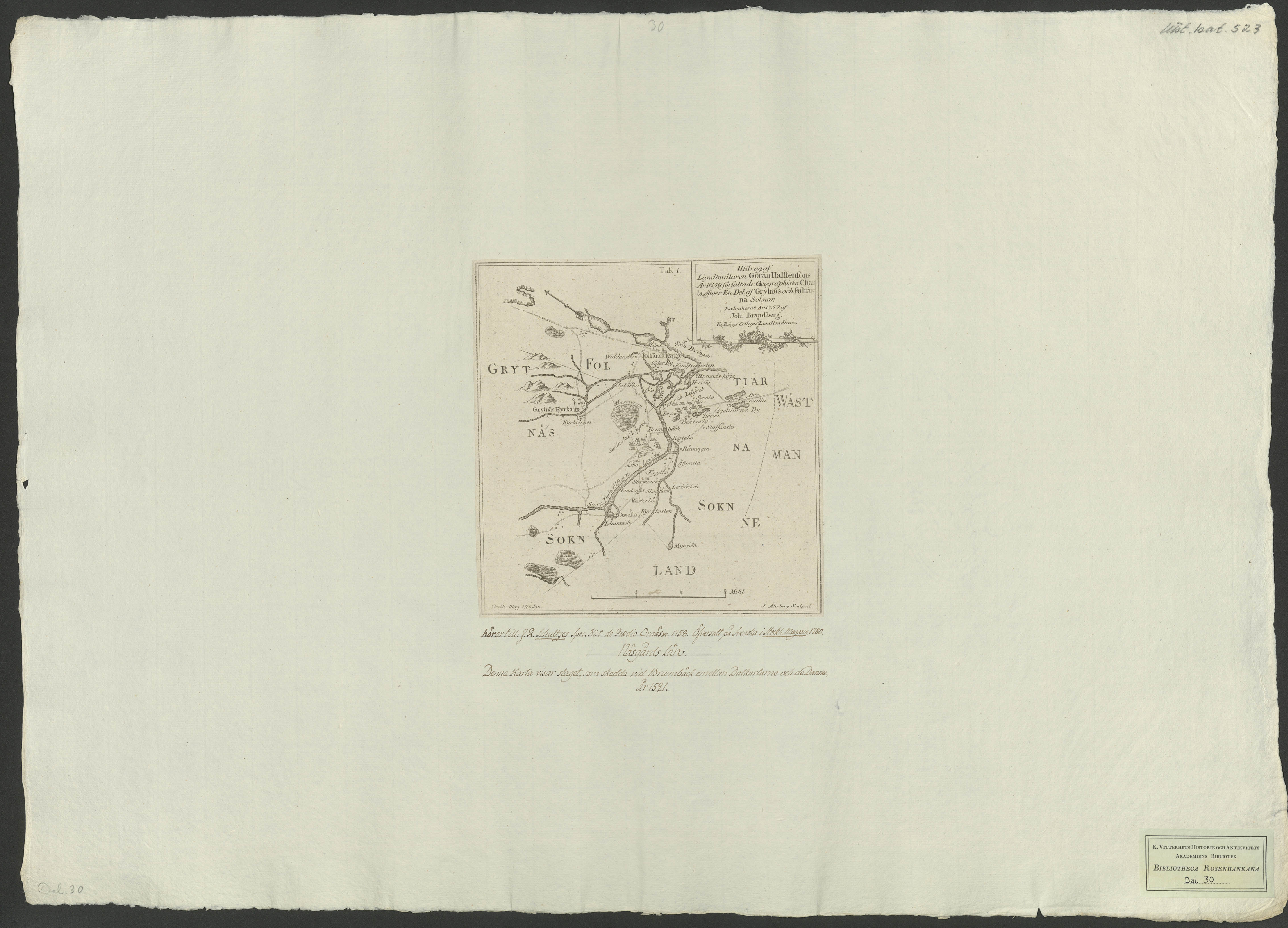 Beskrivning: 1 karta : Enkel topografisk karta. Visar bebyggelse och vägar. J. Åhrberg Sculpsit