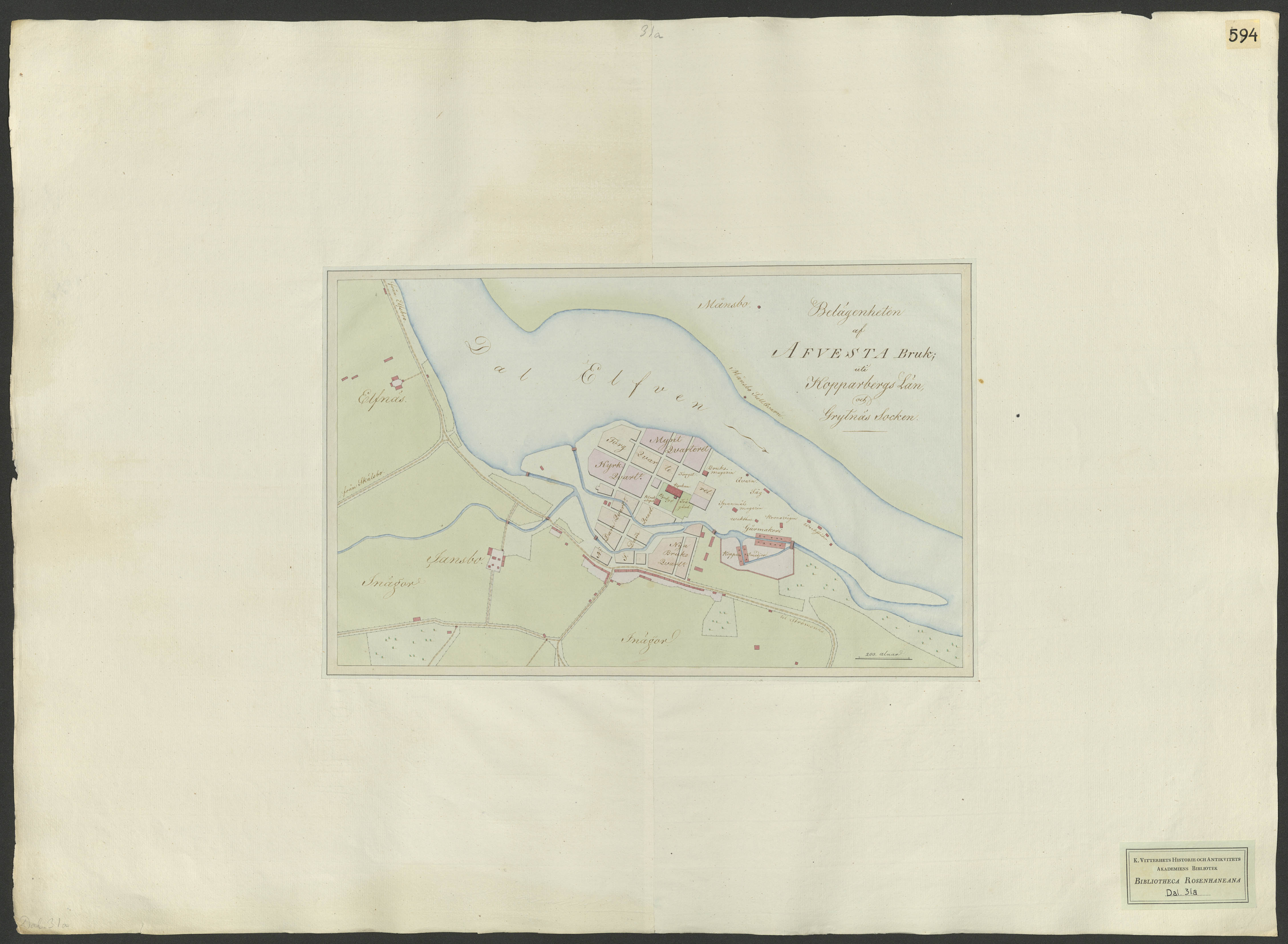 Belägenheten af Afvesta bruk, uti Koppaarbergs län och Grytnäs socken.[Kartografiskt material]