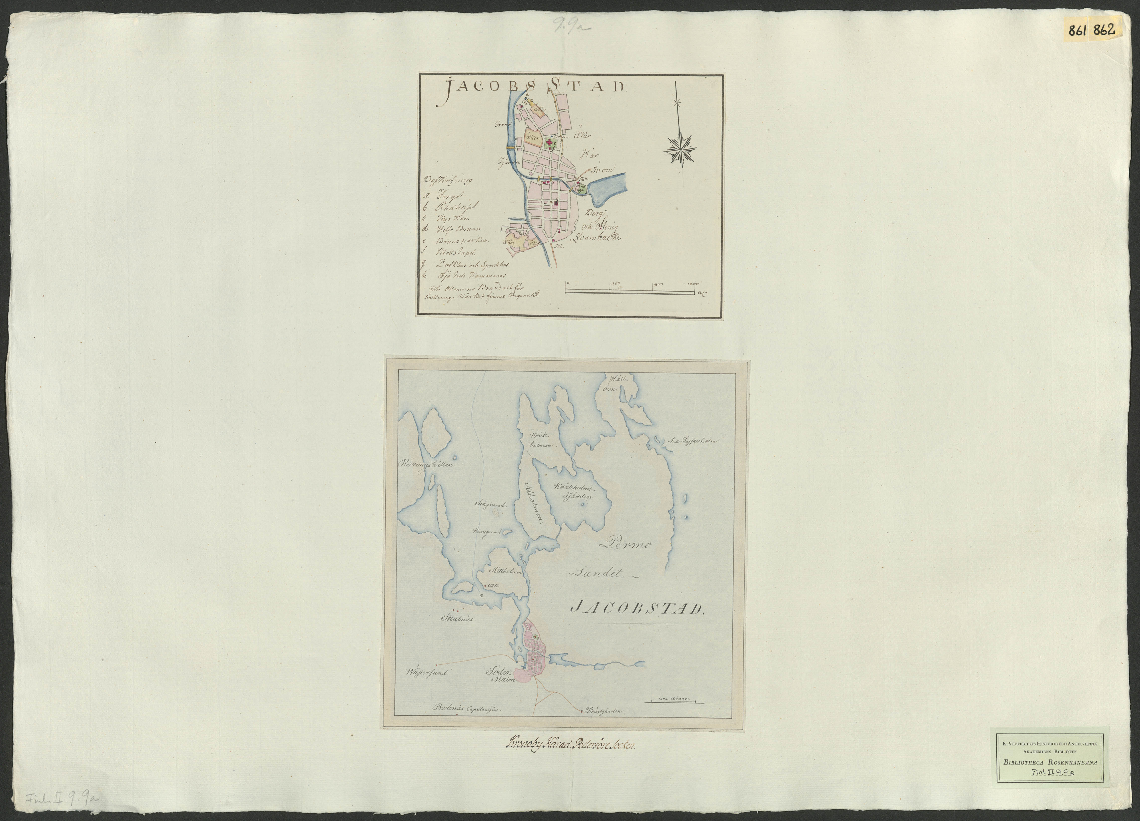 Beskrivning: 1 handritad karta : Stadskarta med kvarter och gator. Teckenförklaring. Skala ca 1:8 000.