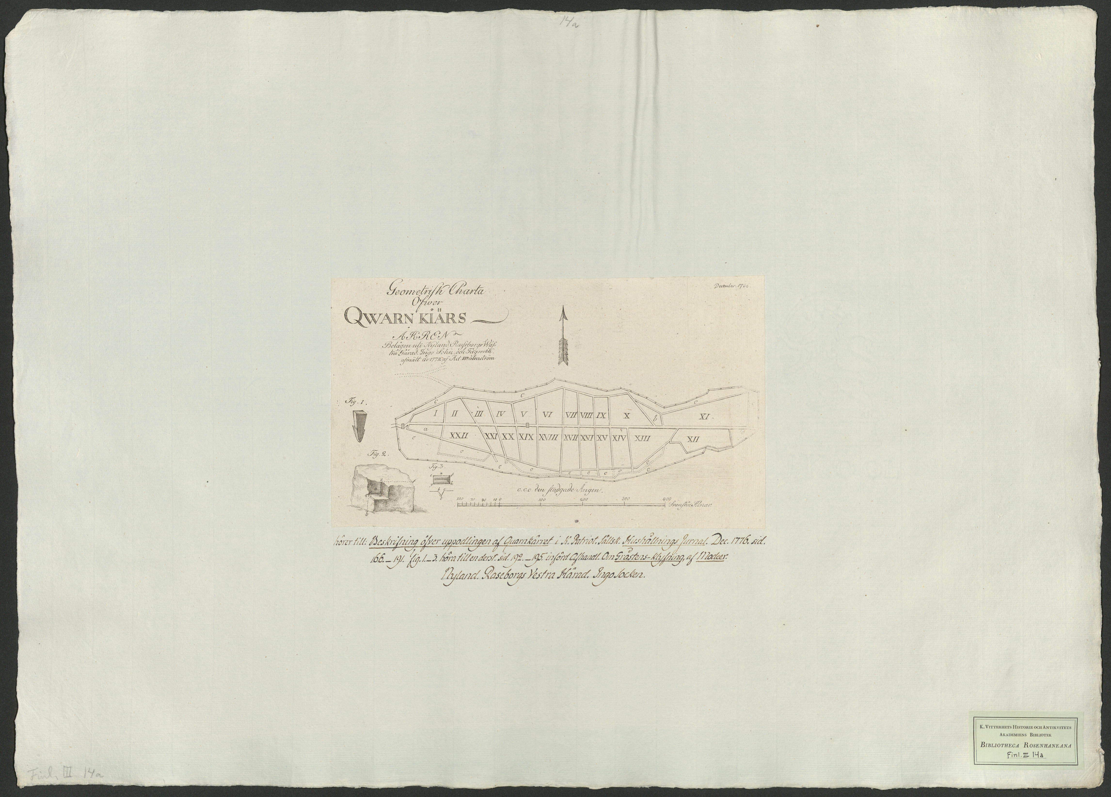 Geometrisk charta öfwer Qwarn Kiärs åkern, belägen uti Nyland Raseborgs vestra härad, Ingo sokn och Fagervik. Afmätt år 1772 af Ad. Malmström..[Kartografiskt material]
