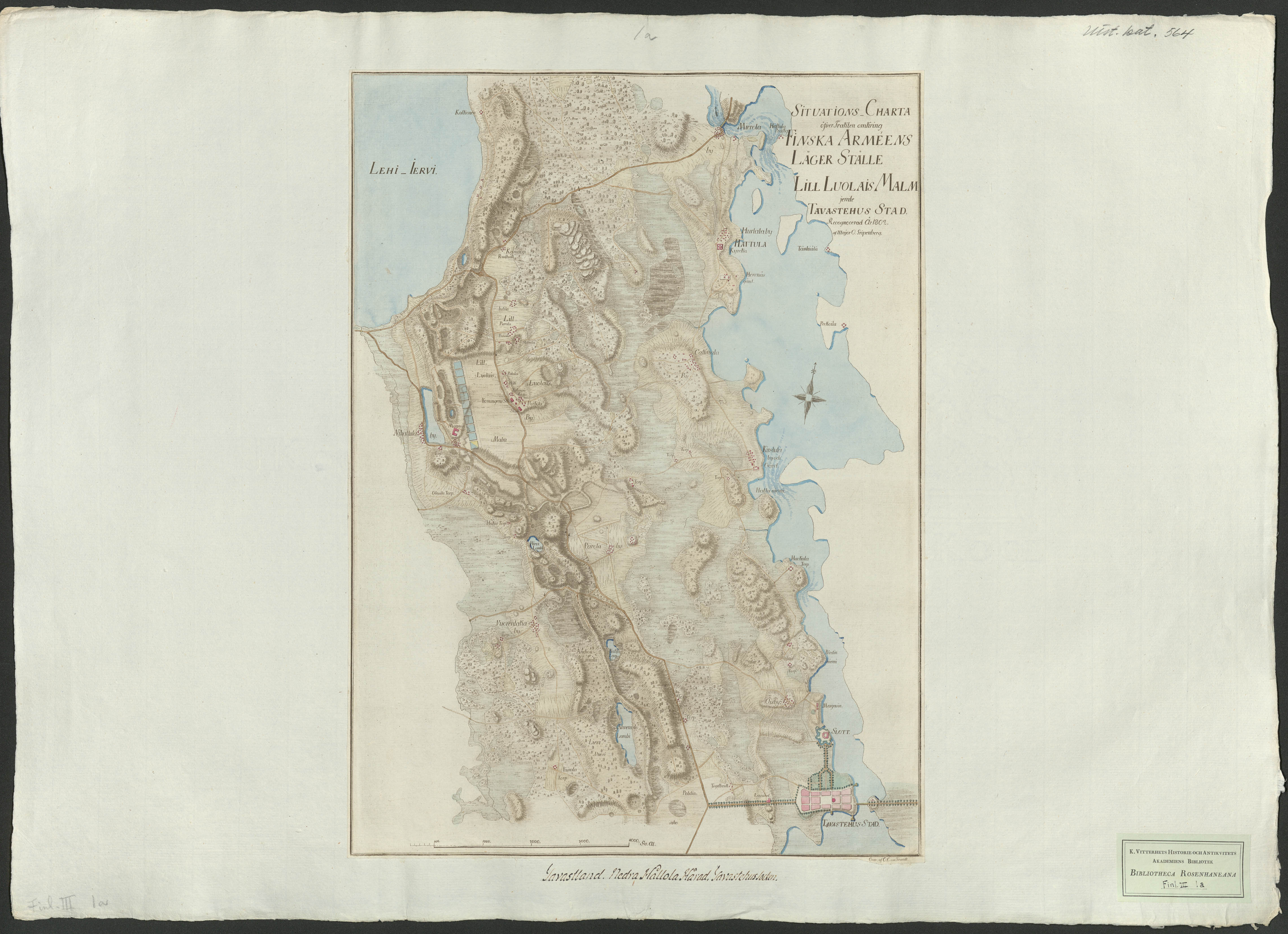 Situations charta öfwer trakten omkring Finska arméens läger ställe Lill Luolais Malm jemte Tavastehus stad..[Kartografiskt material]