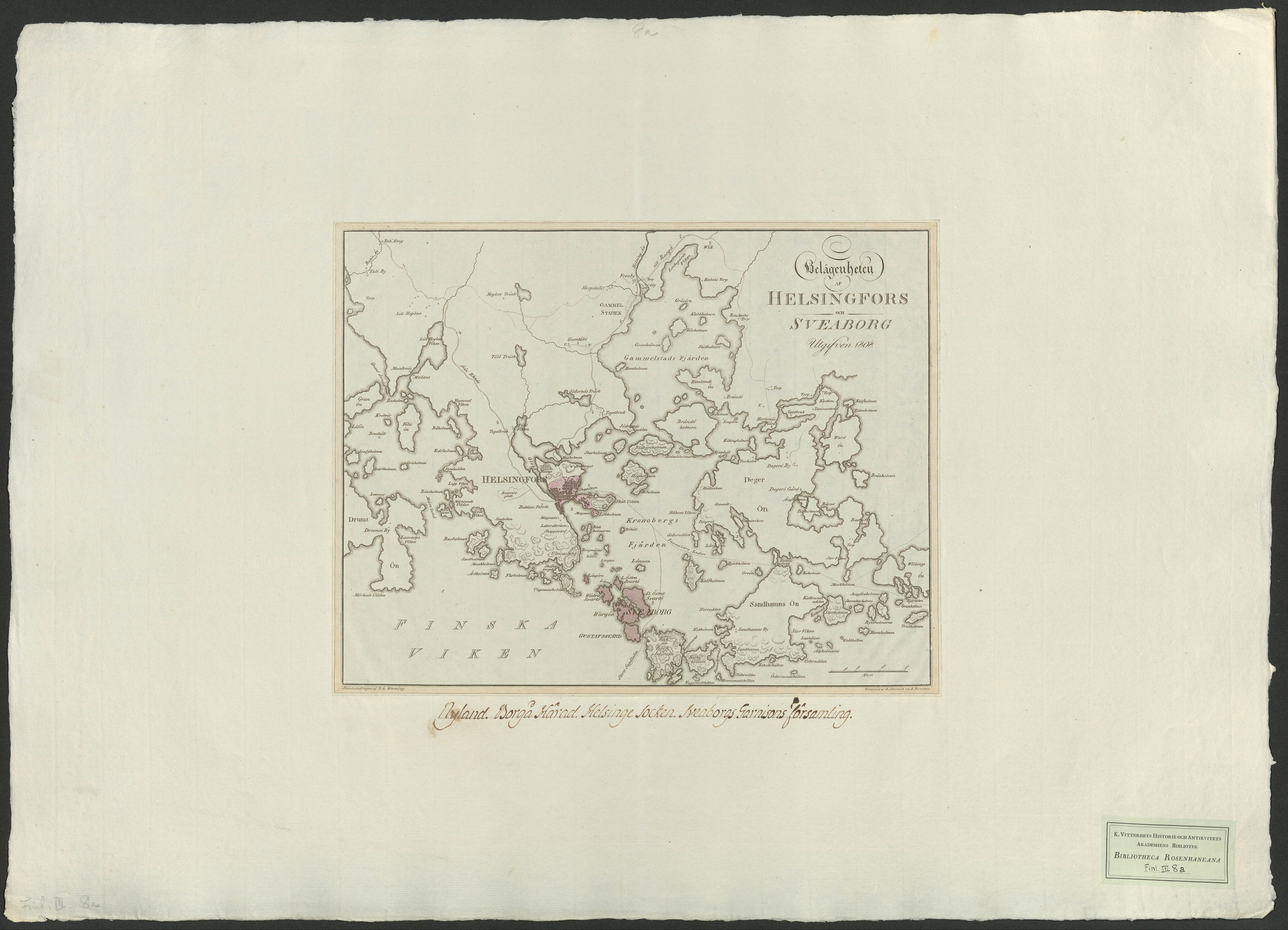 Belägenheter af Helsingfors och Sveaborg utgifven 1808.[Kartografiskt material]