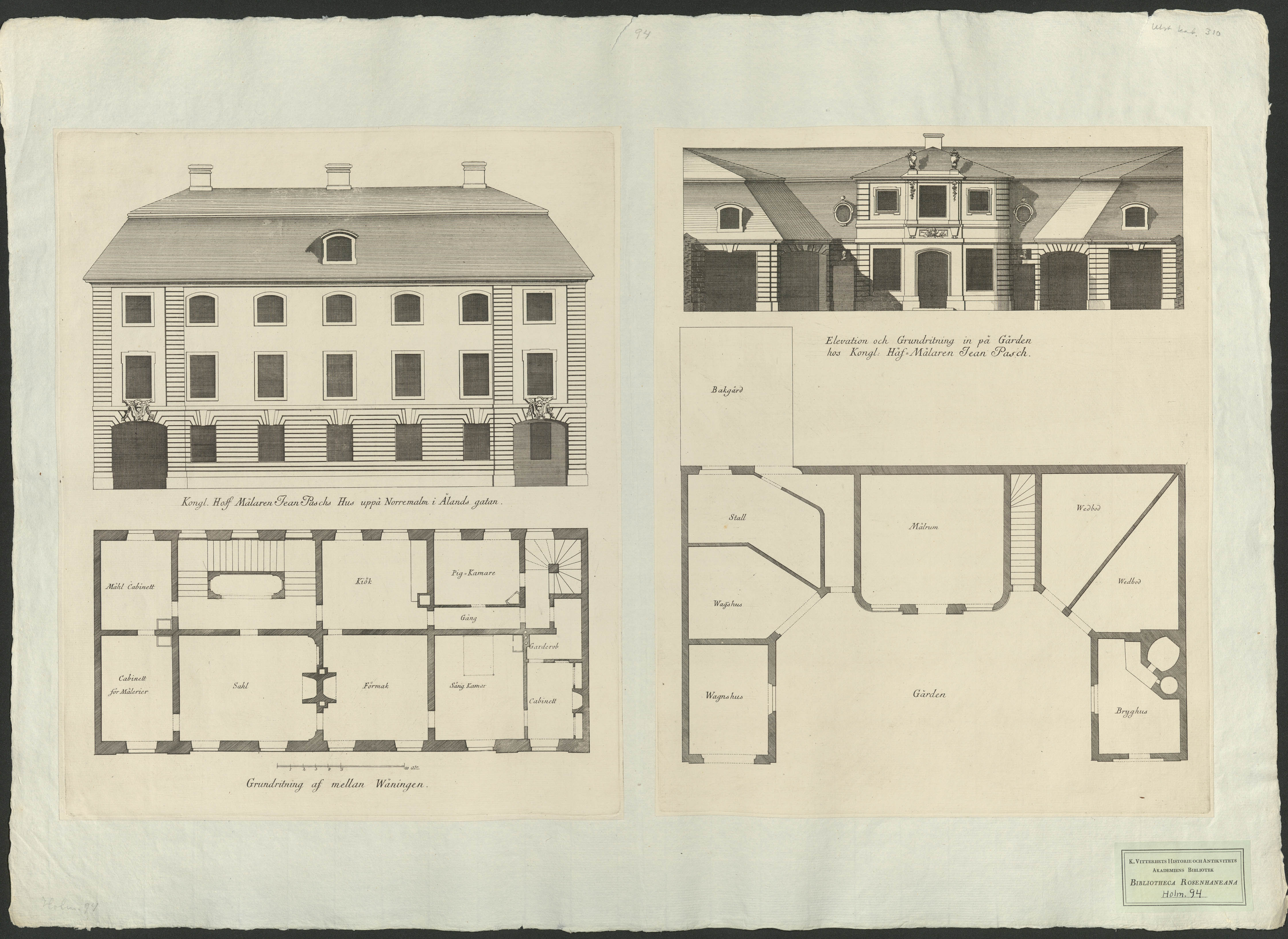Beskrivning: 1 grafiskt bl. : Två fasader och två planritningar.