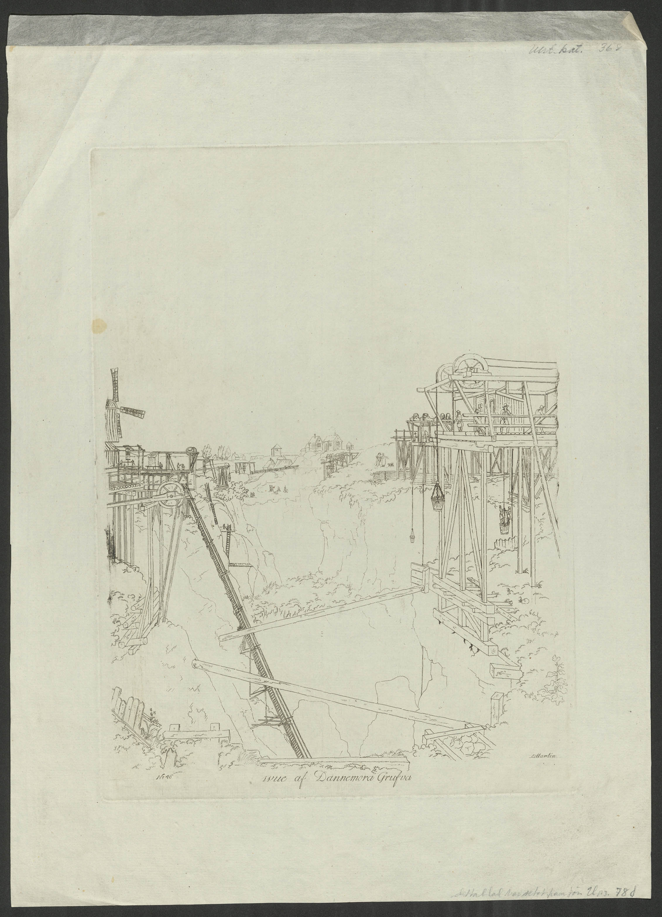 Beskrivning: 1 grafiskt bl. : Vy över dagbrottet Storrymningen i gruvan. E. Martin