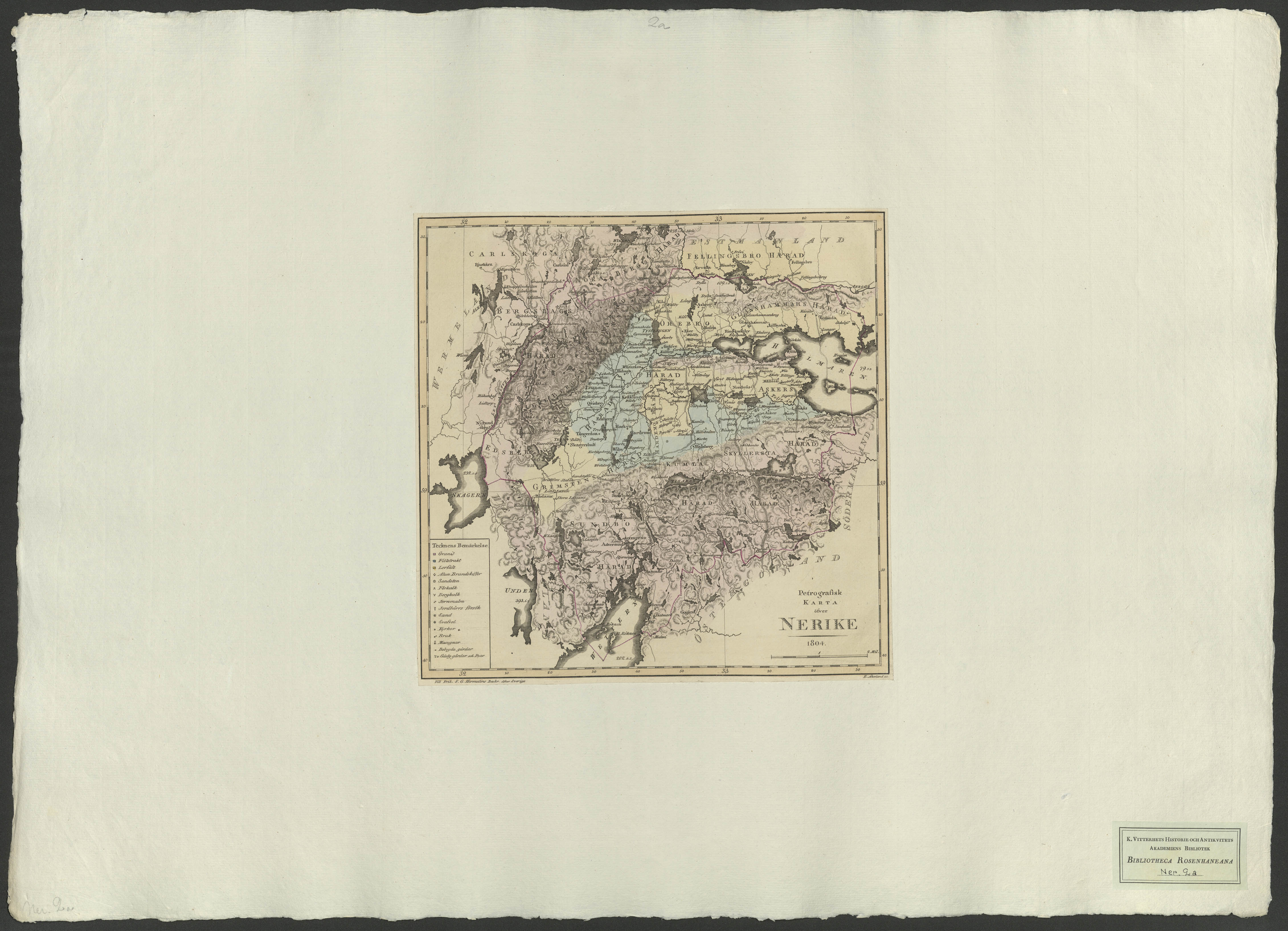 Petrografisk karta öfver Nerike 1804. Till Frih. S. G. Hermelins Beskr. öfver Sverige.[Kartografiskt material]