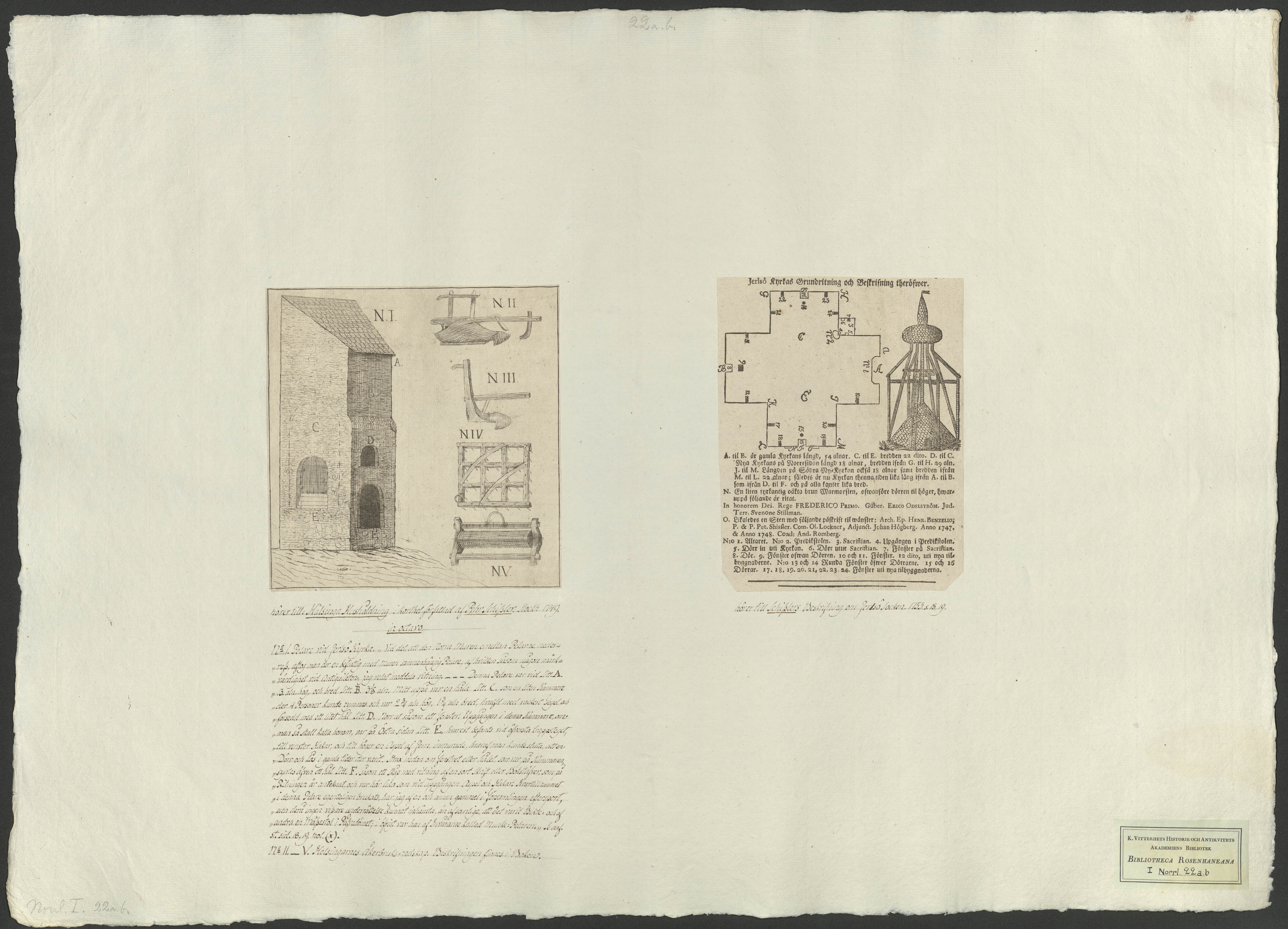 Beskrivning: 1 grafiskt bl. : Teckning av byggnadsdetaljer i Järvsö kyrka. Teckning av fyra jordbruksredskap.