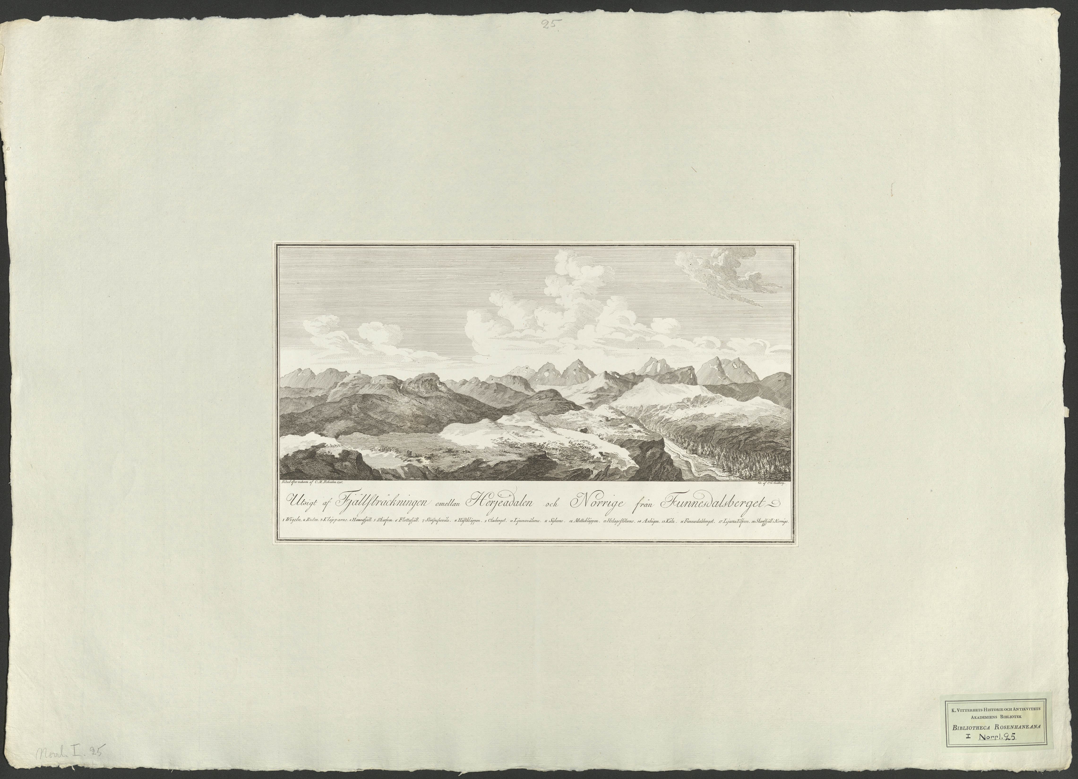 Utsigt af Fjällsträckningen emellan Herjeådalen och Norrige från Funnesdalsberget.[Bild]