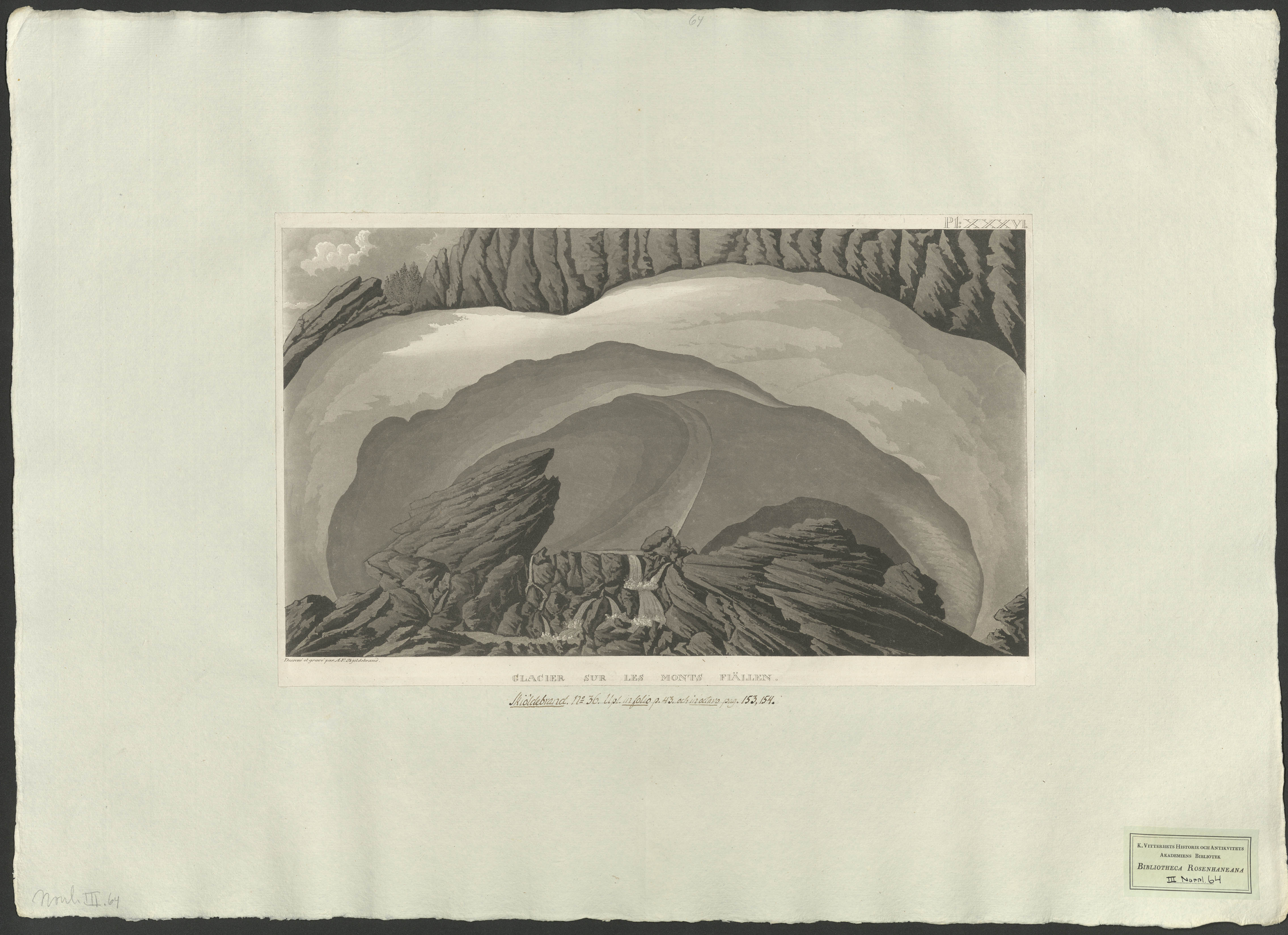 Beskrivning: 1 grafiskt bl. : Bild av en glaciär. Dessiné et gravé par A. F. Skjöldebrand