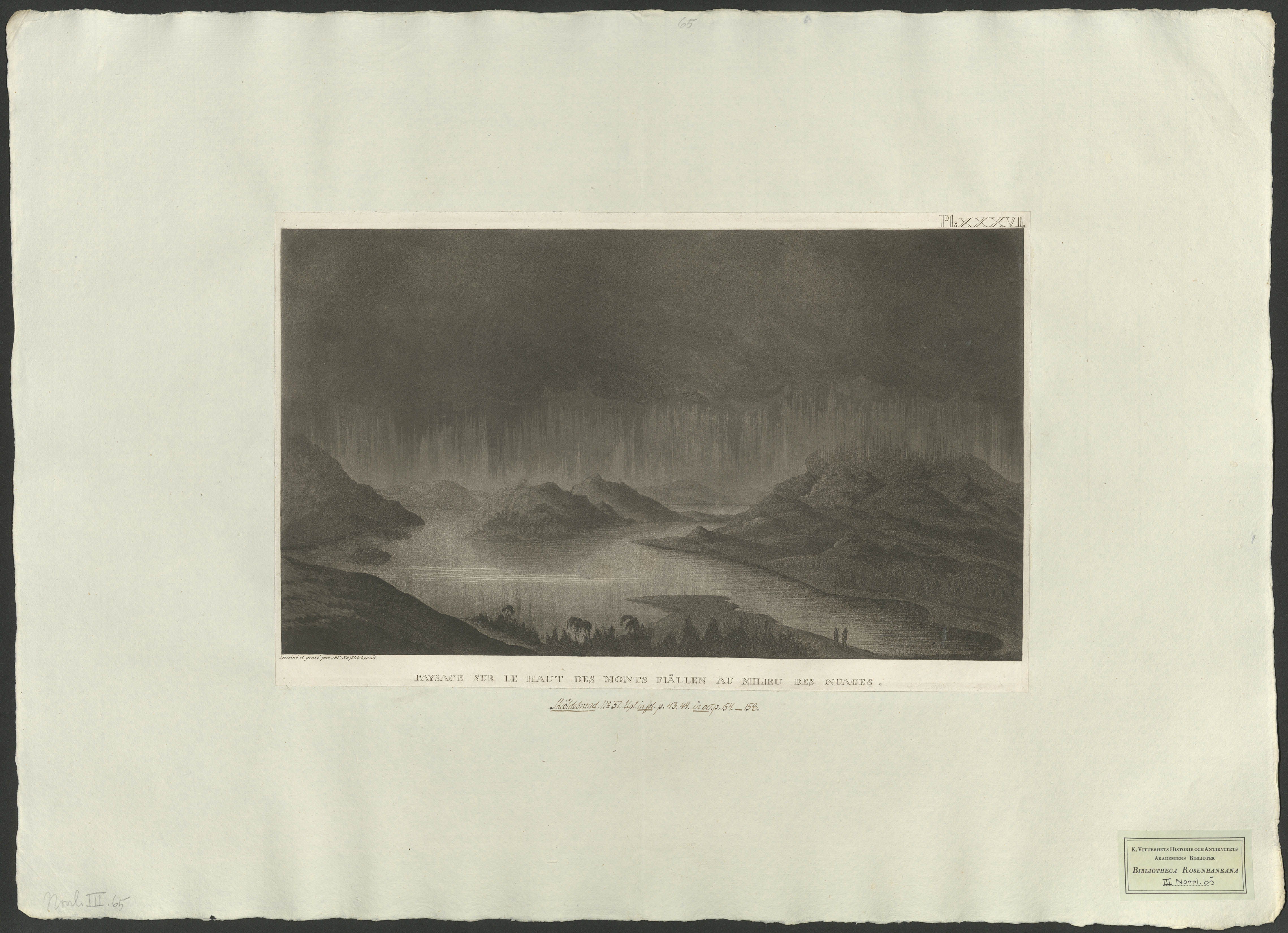 Beskrivning: 1 grafiskt bl. : Vy över ett sjöparti i fjällen. Dessiné et gravé par A. F. Skjöldebrand
