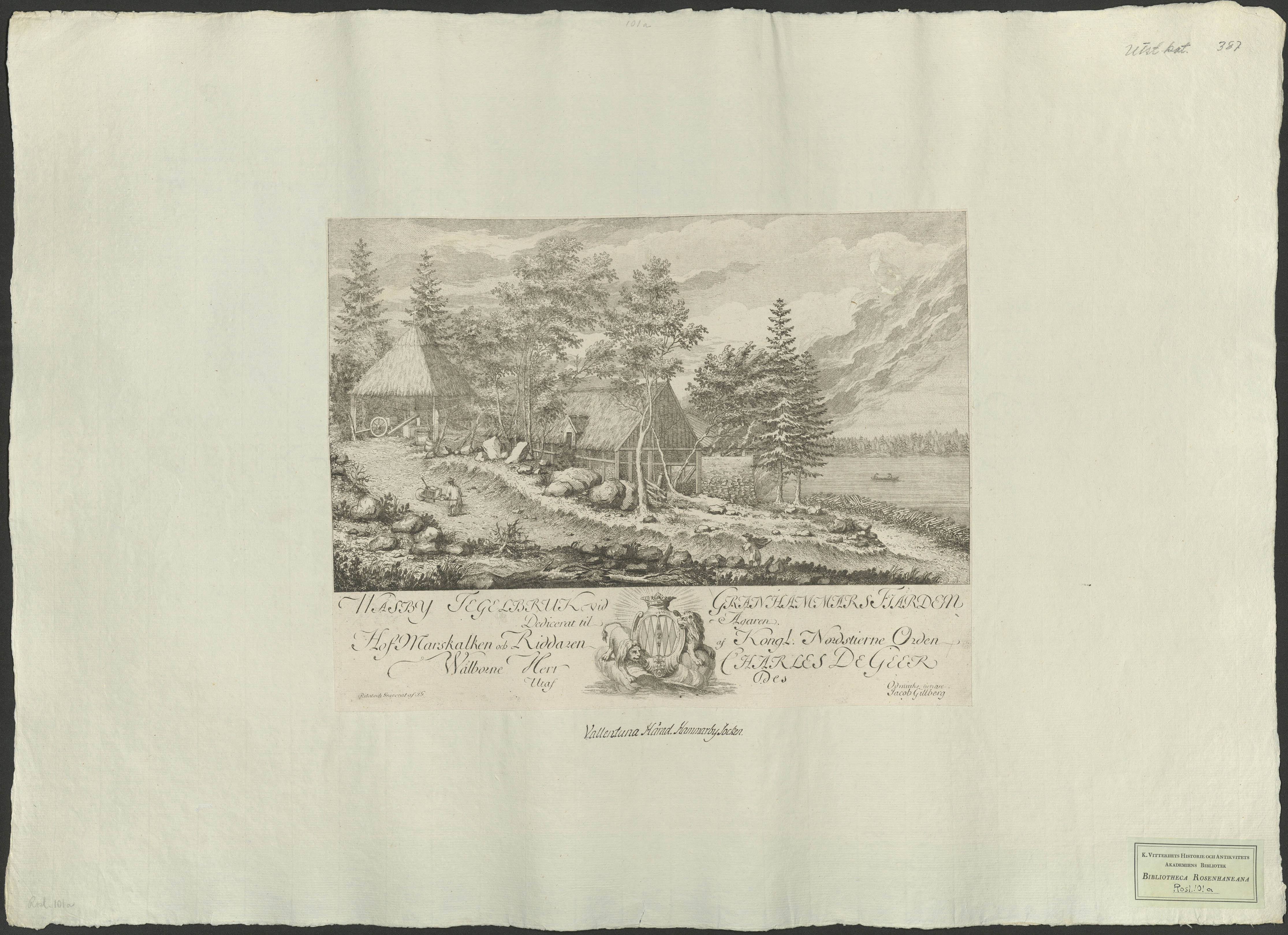 Beskrivning: 1 grafiskt bl. : Några bruksbyggnader vid Granhammarsfjärdens strand. "Ritat och graverat af J. G."
