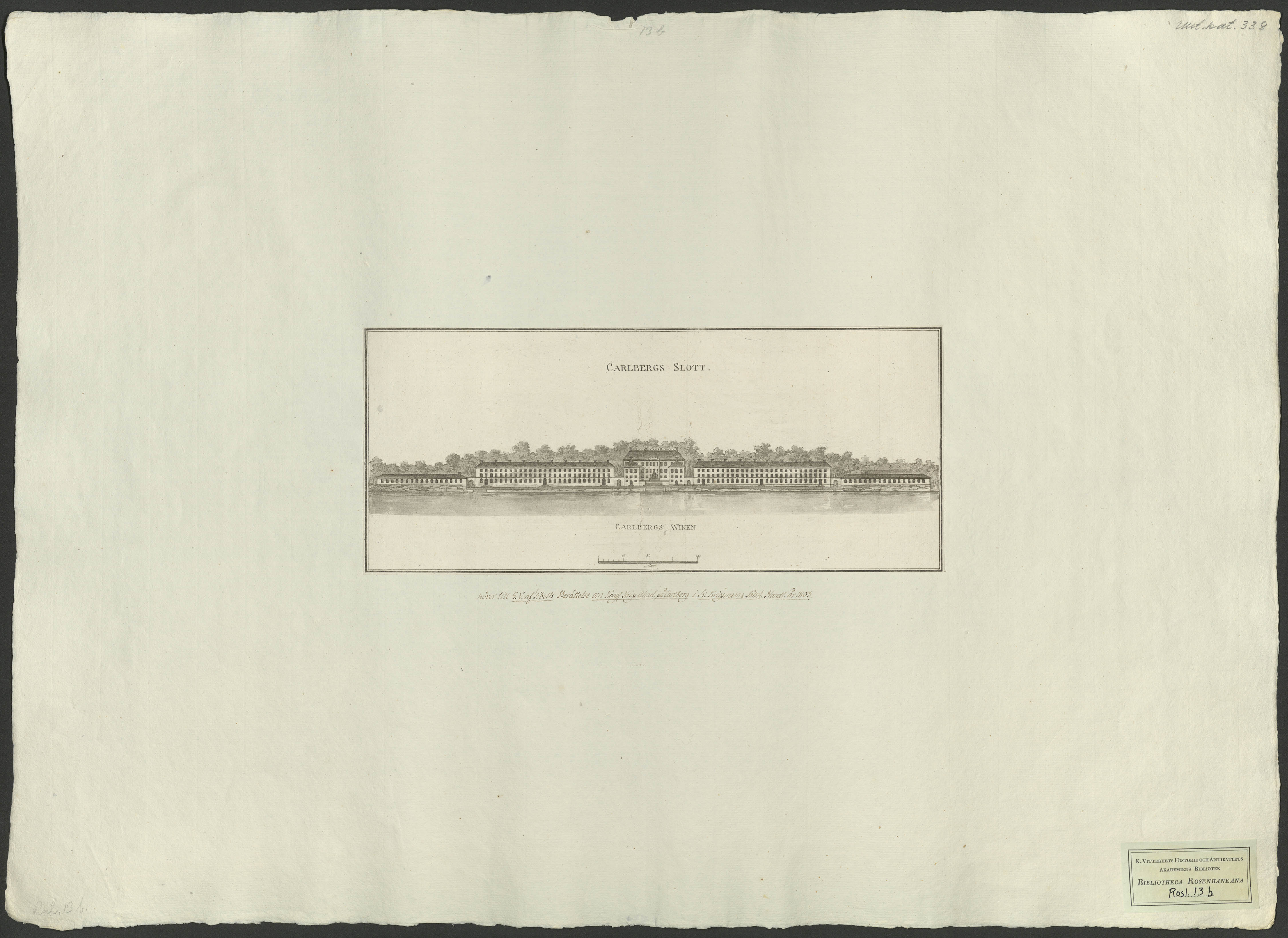 Beskrivning: 1 grafiskt bl. : Arkitekturritning av Karlbergs slott. Skala: 1 cm = 17 alnar.