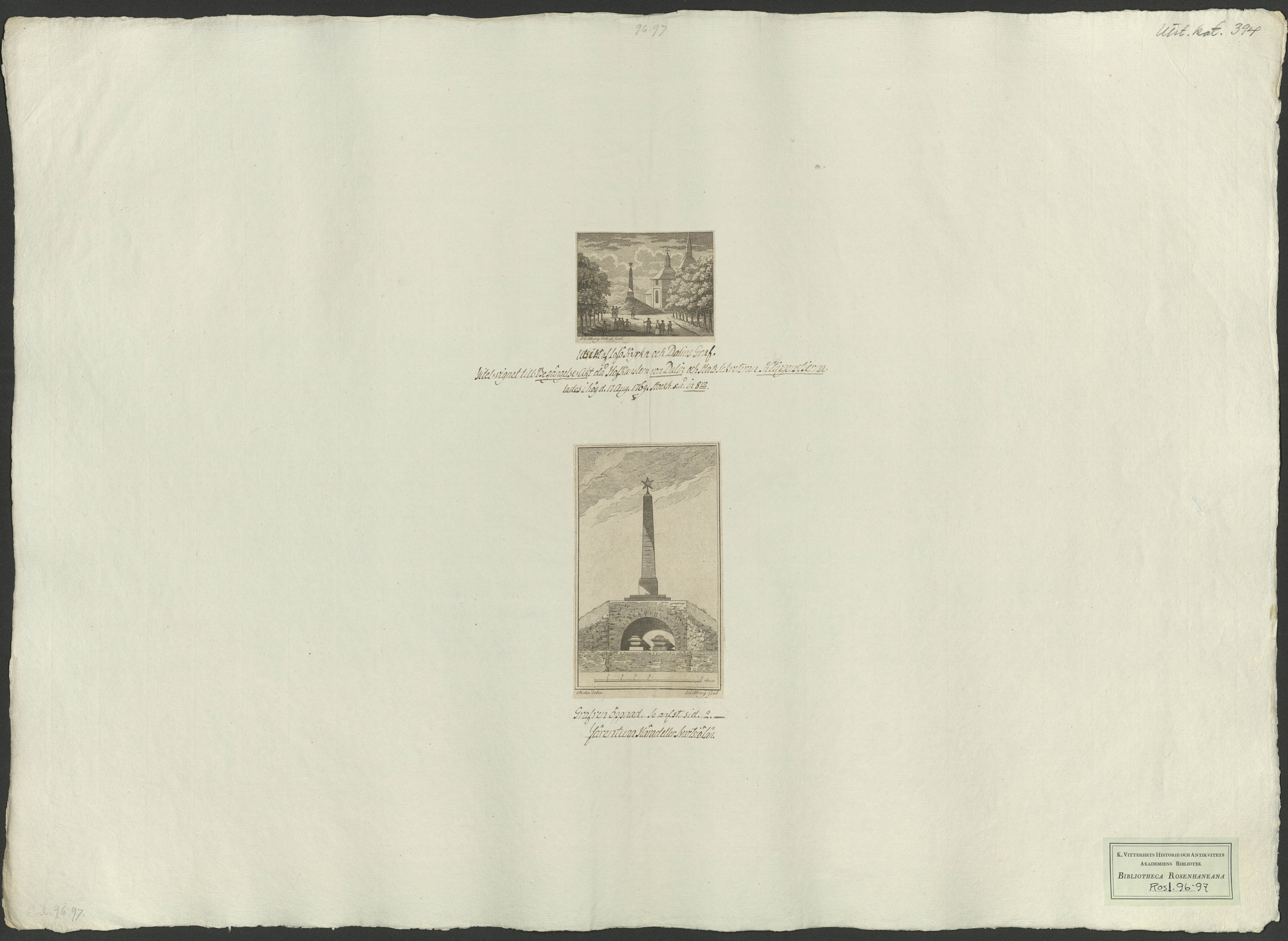 [Utsikt av Lovö kyrka och Dahlins grav].[Bild]