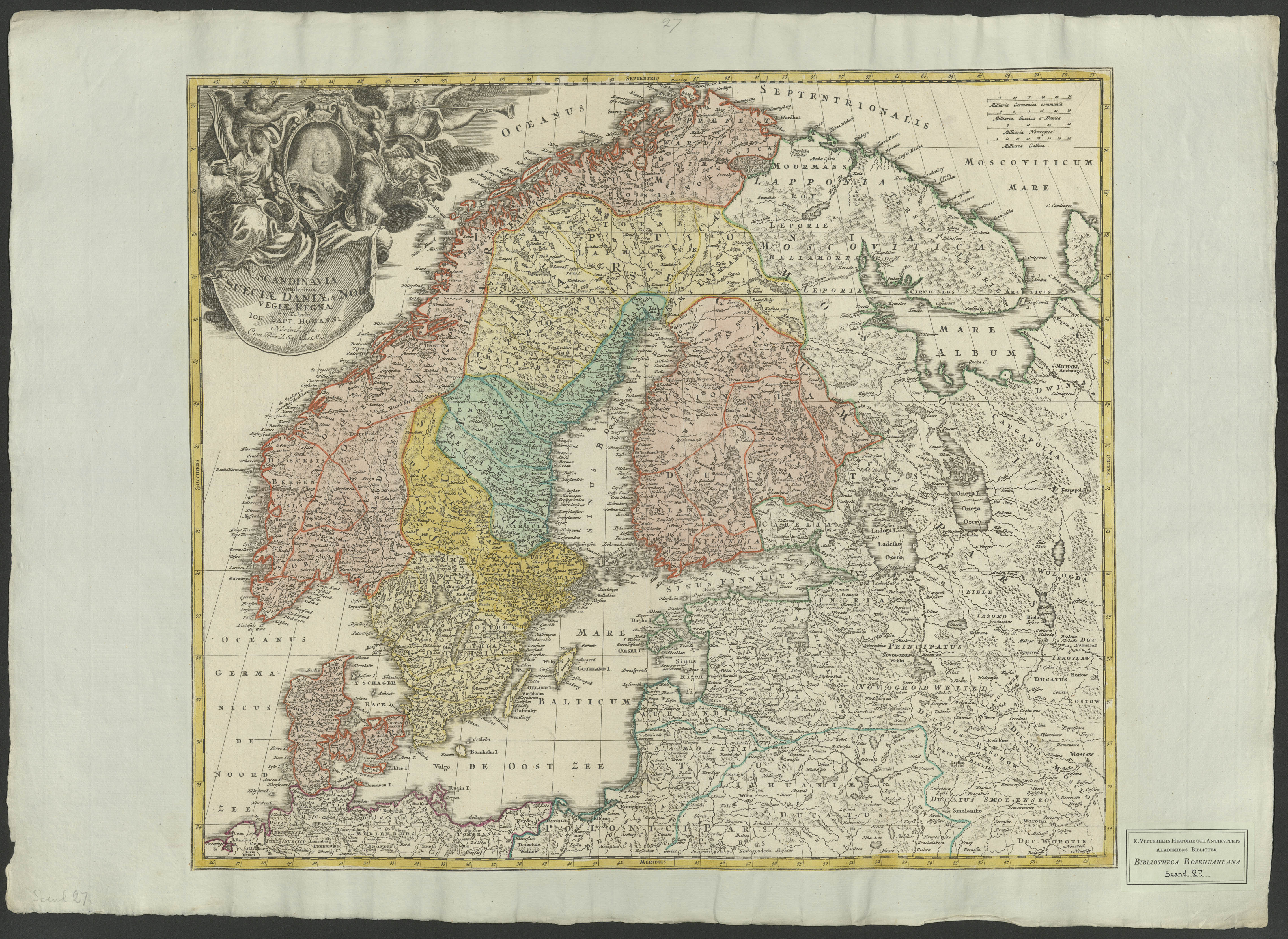 Beskrivning: Anmärkning (övrig): Se bibliotekskatalog för fullständiga uppgifter för dessa bilder Beskrivning: 1 karta : Visar Skandinavien, Finland, Baltikum samt del av Ryssland och norra Tyskland. Ioh. Bapt. Homanni. Norimbergæ