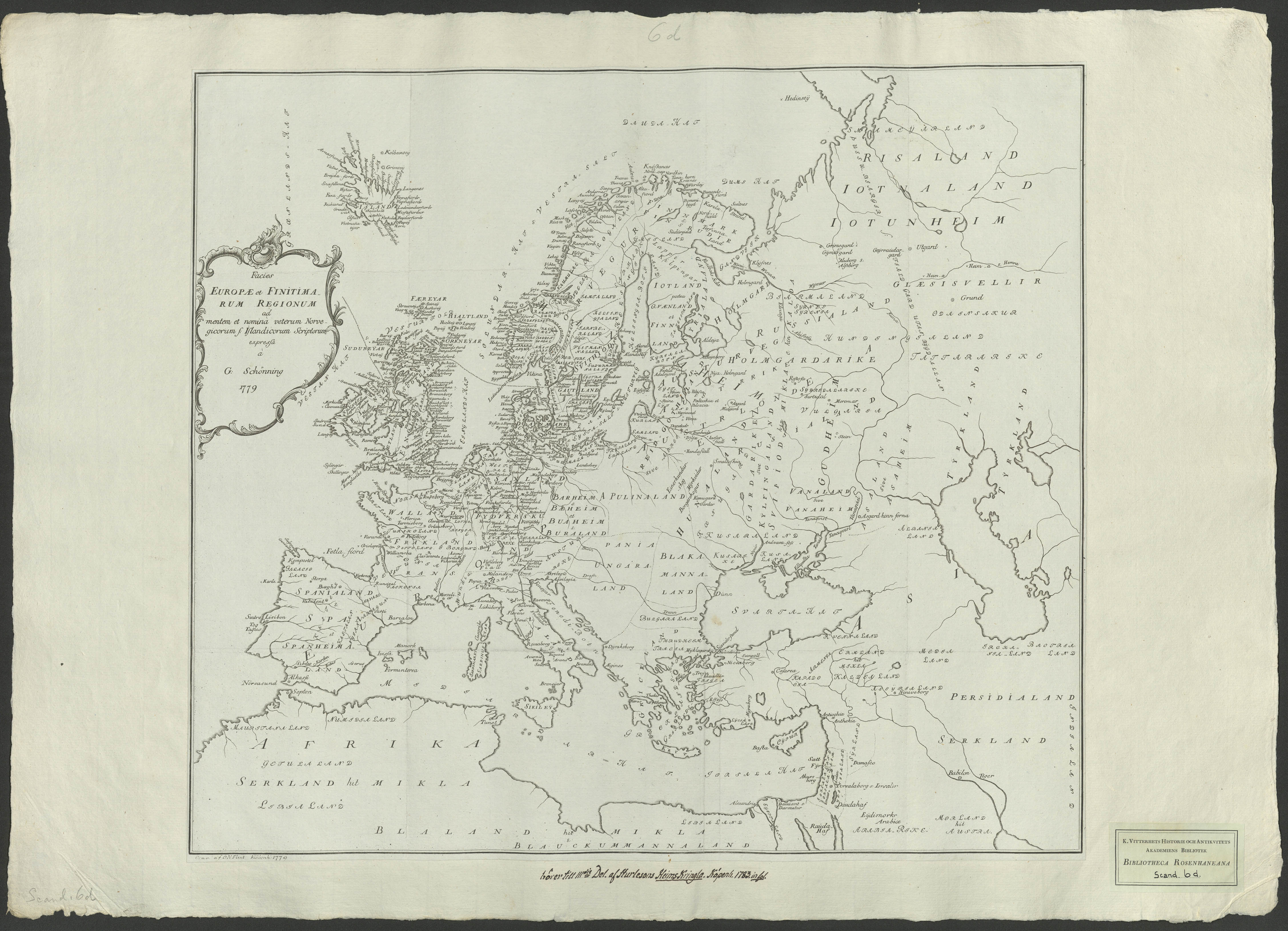 Beskrivning: 1 karta : Visar Europa och lite av norra Afrika. Grav. af O. N. Flint Kiöbenh. 1779