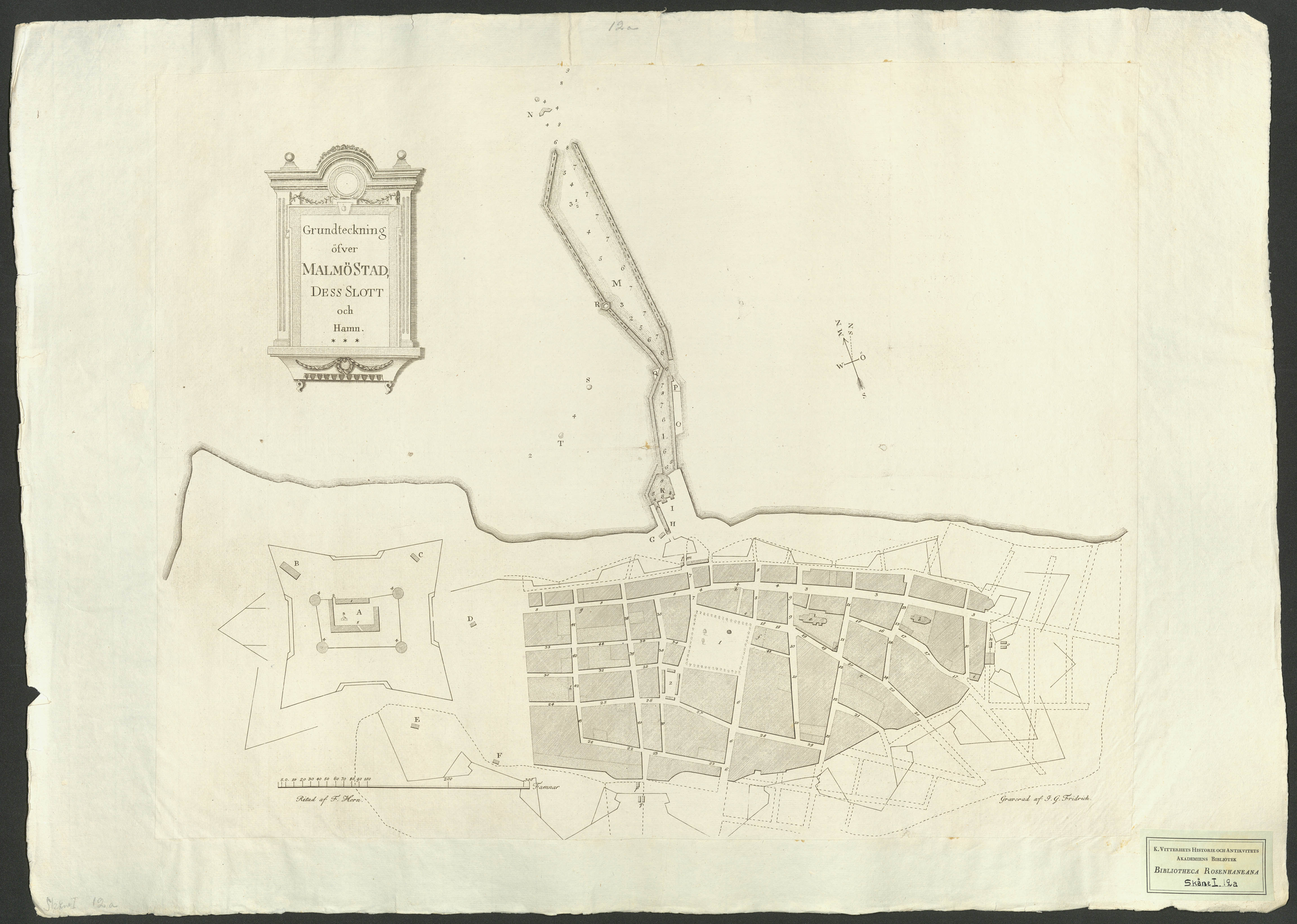 Grundteckning öfver Malmö Stad, dess slott och hamn.[Kartografiskt material]