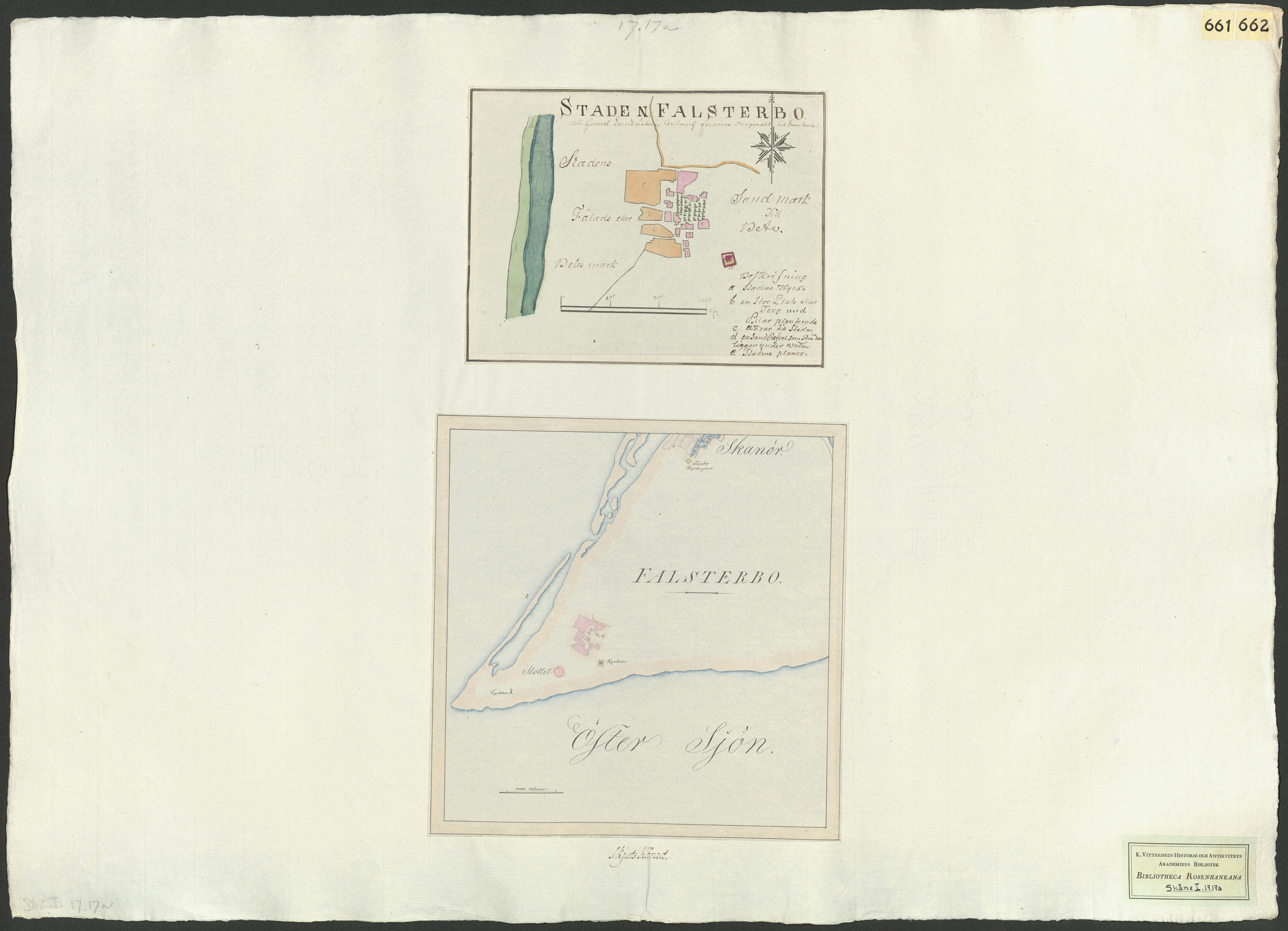 Beskrivning: 1 handritad karta : Visar staden och Falsterbonäset. Ungefärlig skala 1:19 600.
