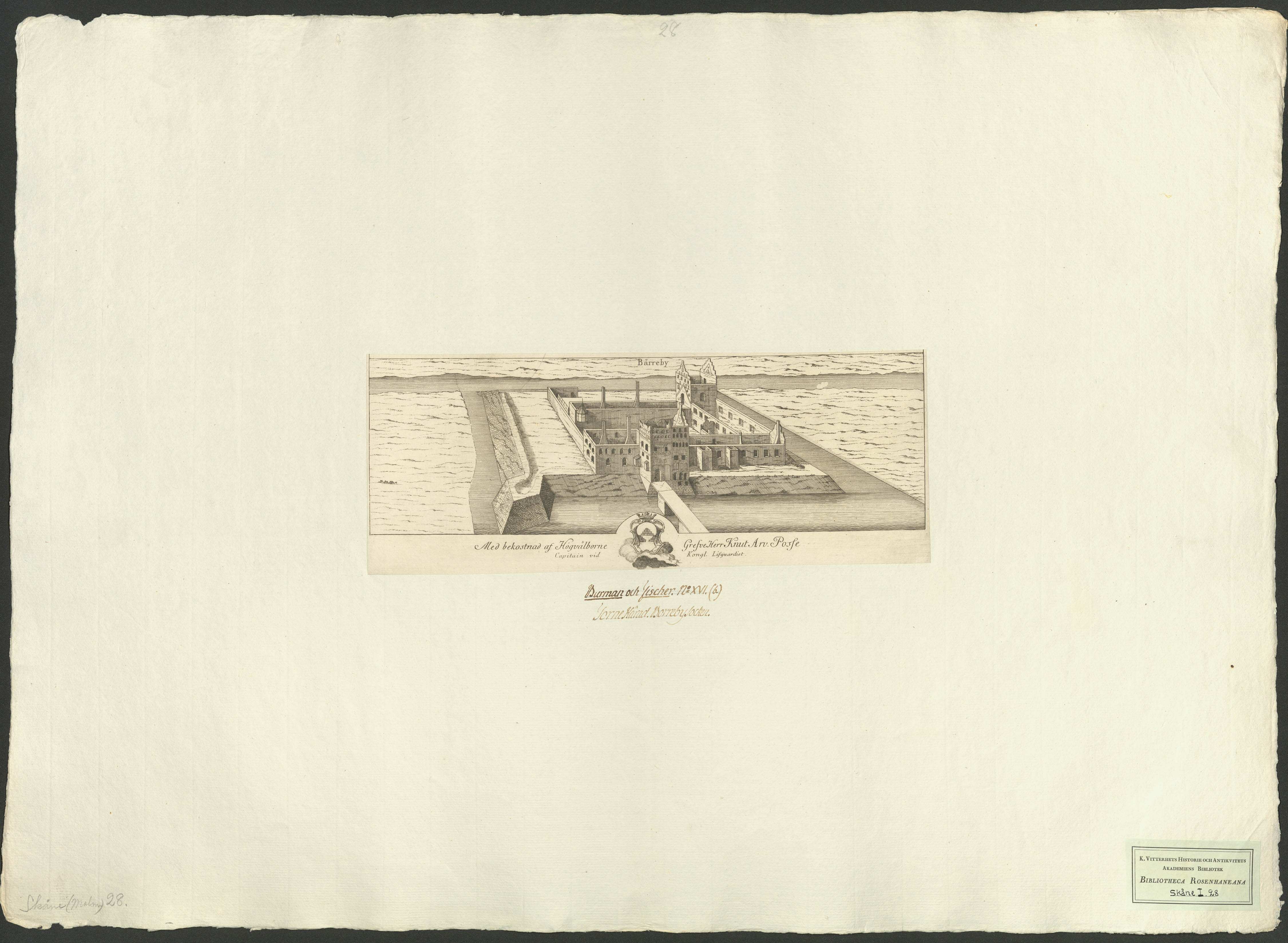 Beskrivning: 1 grafiskt bl. : Teckning i fågelperspektiv av Borgeby slott. Förväxla ej med Bårreby i Danmark.