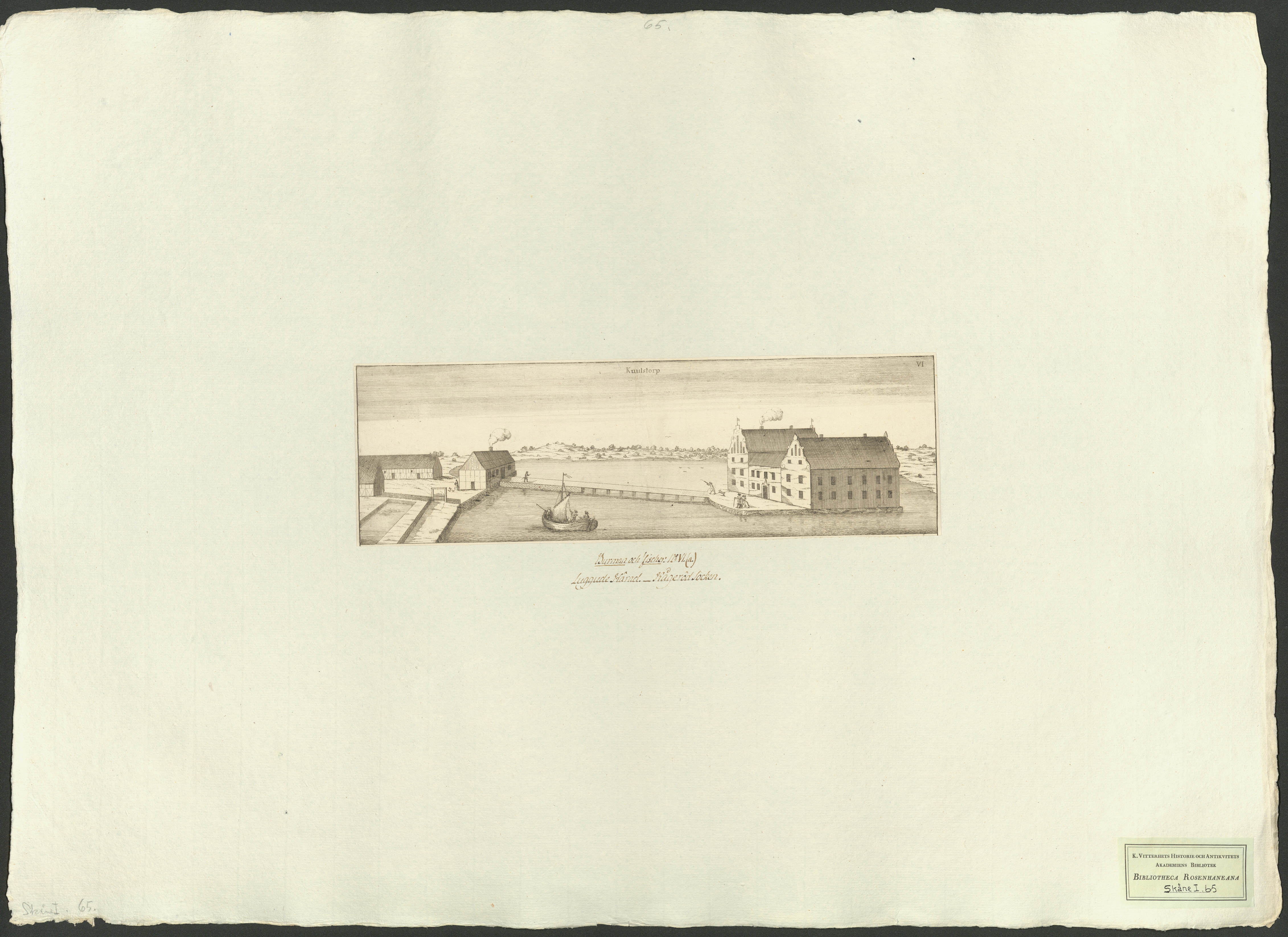 Beskrivning: 1 grafiskt bl. : Teckning i fågelperspektiv av slottsanläggningen.